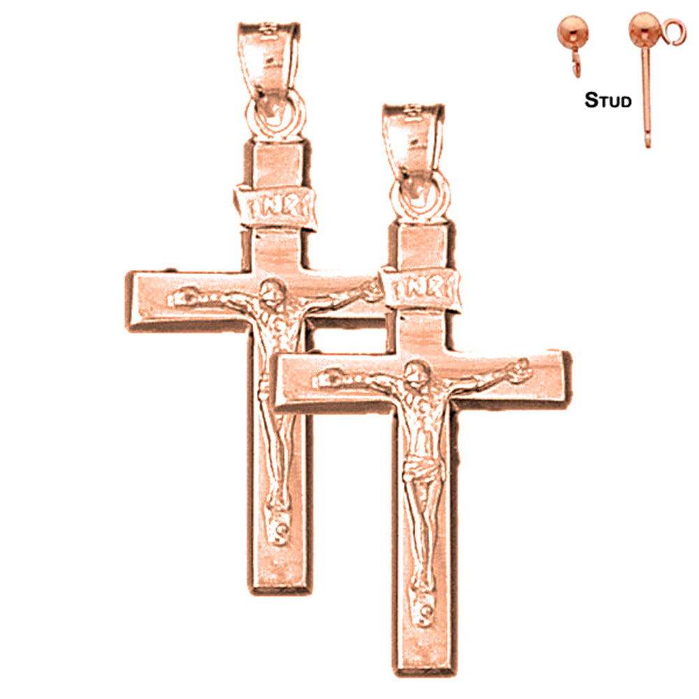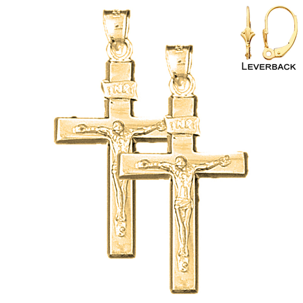14K or 18K Gold 36mm INRI Crucifix Earrings