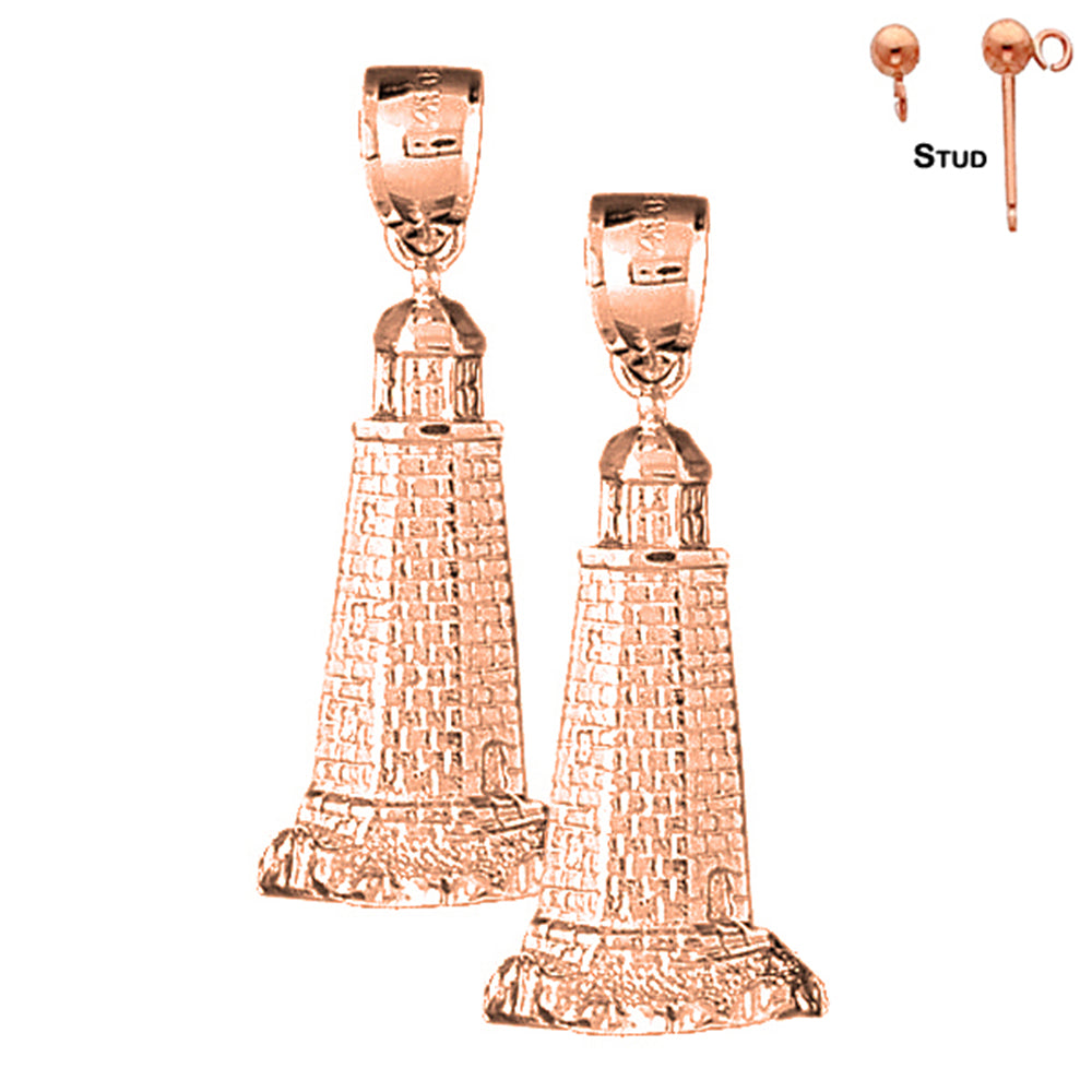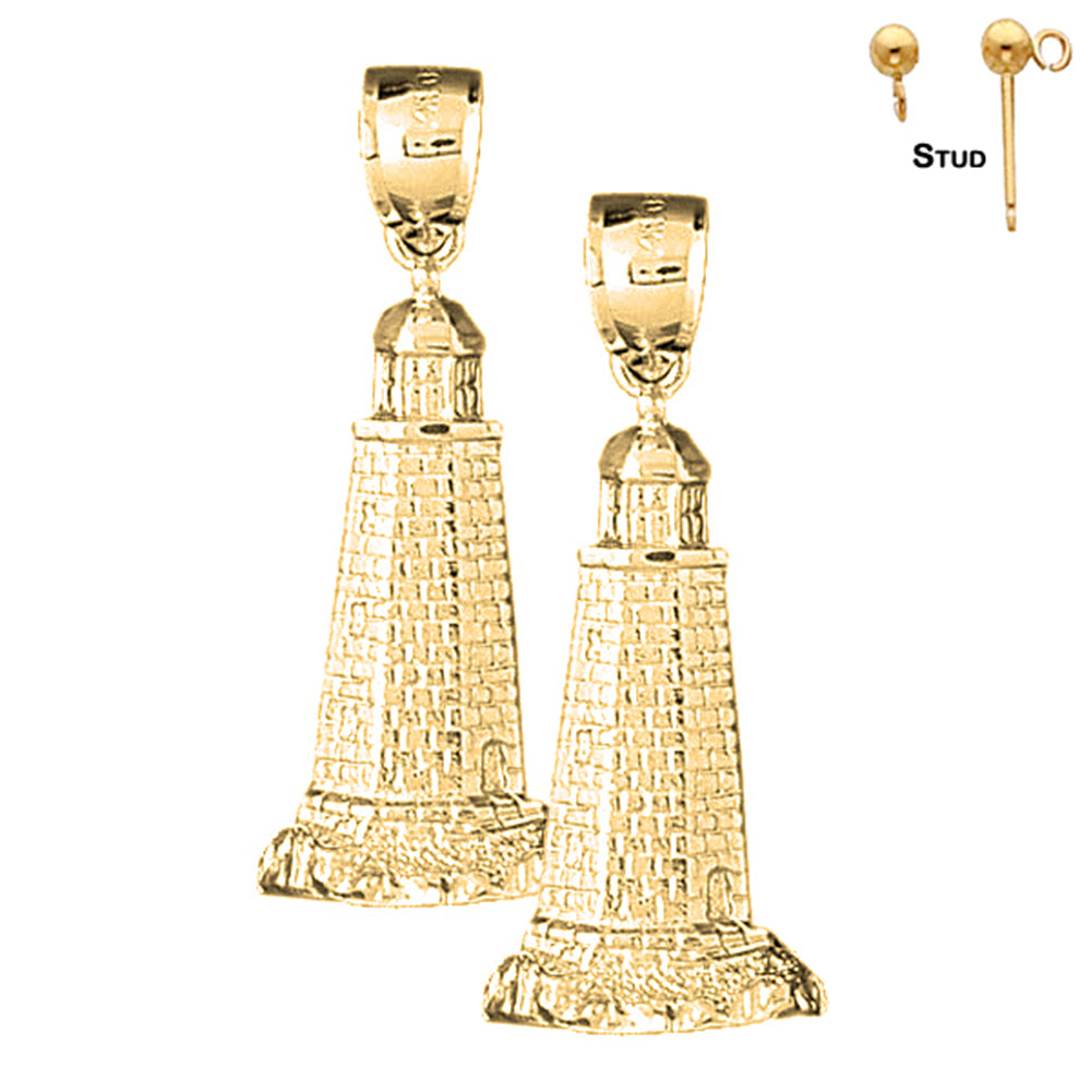 This is a beautiful 14k yellow gold 36mm lighthouse earrings. This 14k yellow gold earrings measures 36 mm in length by 15 mm width. JewelsObsession creates all gold jewelry in our state of the art manufacturing facility.