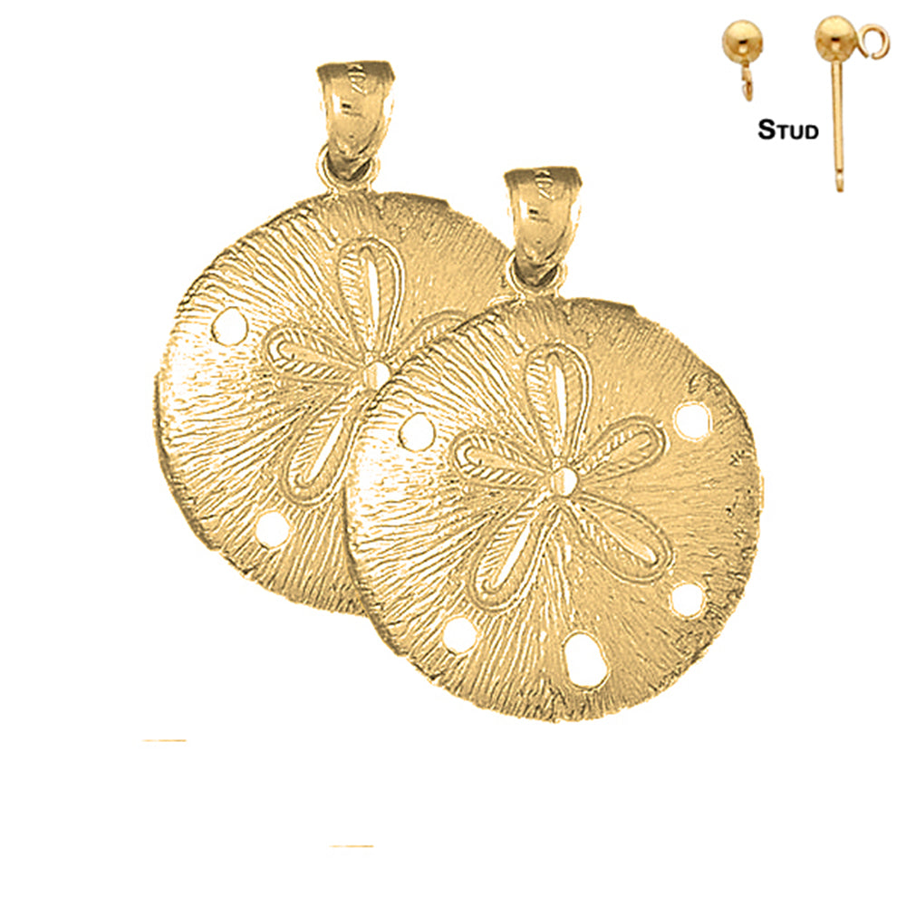 This is a stunning 14k yellow gold 36mm sand dollar earrings. This 14k yellow gold earrings measures 36 mm in length by 27 mm width. JewelsObsession creates all gold jewelry in our state of the art manufacturing facility.
