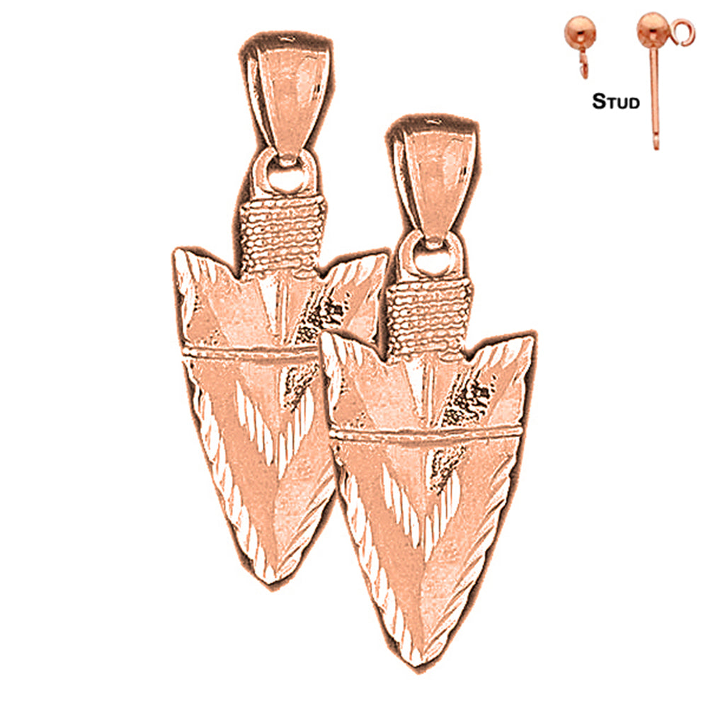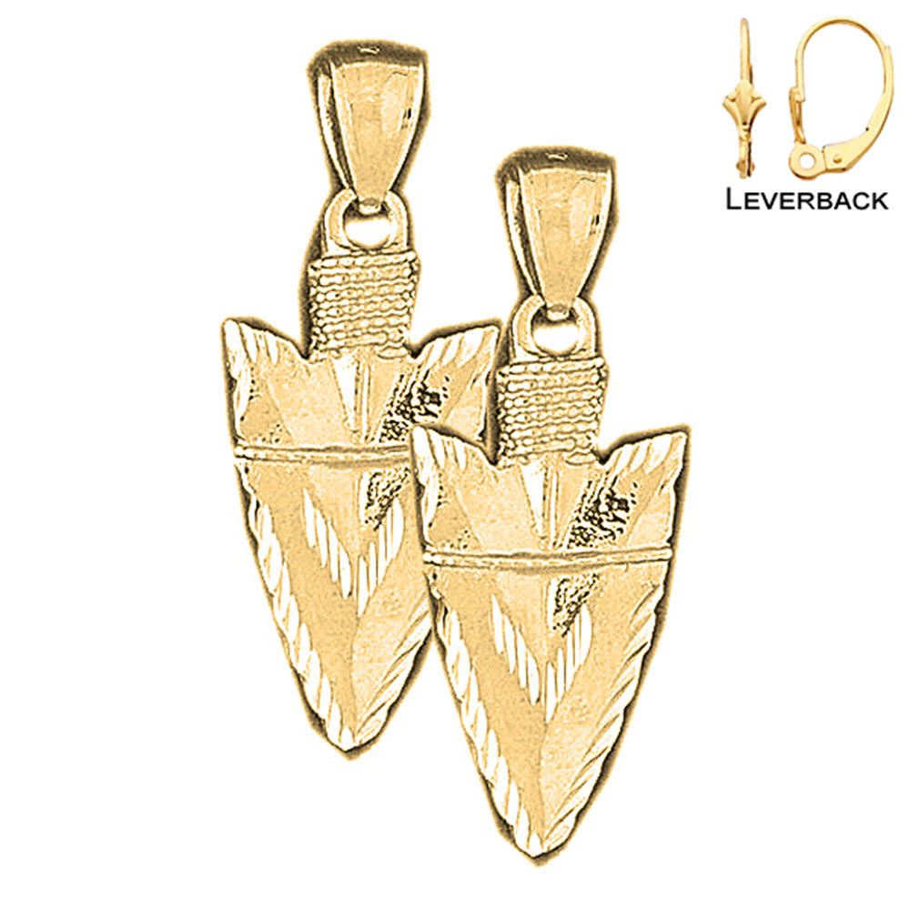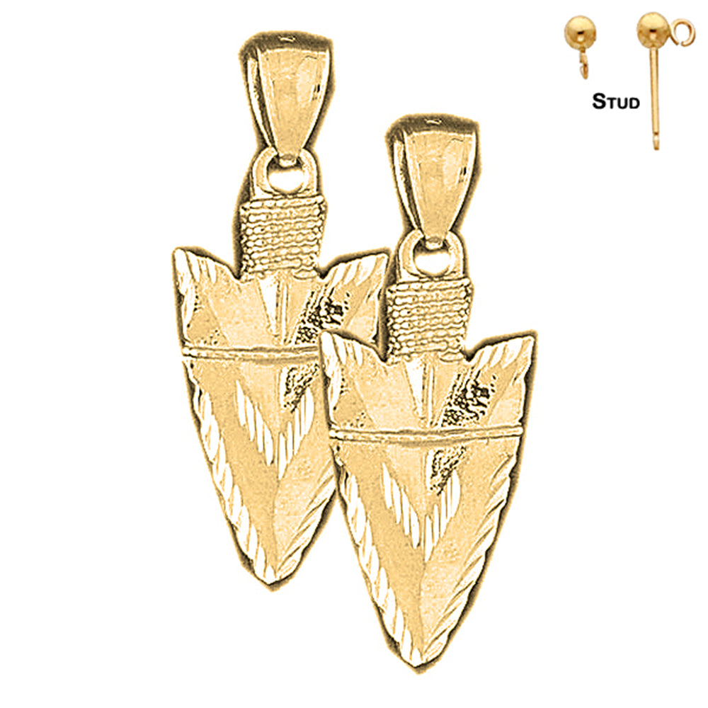 This is an elegant 14k yellow gold 37mm 3d arrowhead earrings. This 14k yellow gold earrings measures 37 mm in length by 15 mm width. JewelsObsession creates all gold jewelry in our state of the art manufacturing facility.