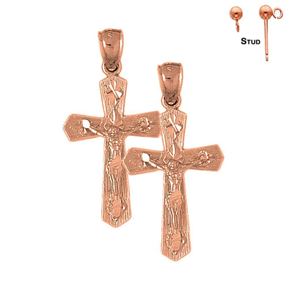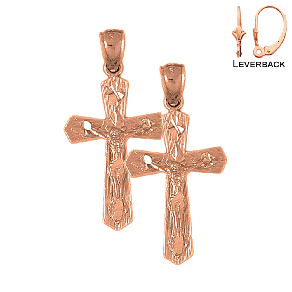 14K or 18K Gold 37mm Passion Crucifix Earrings