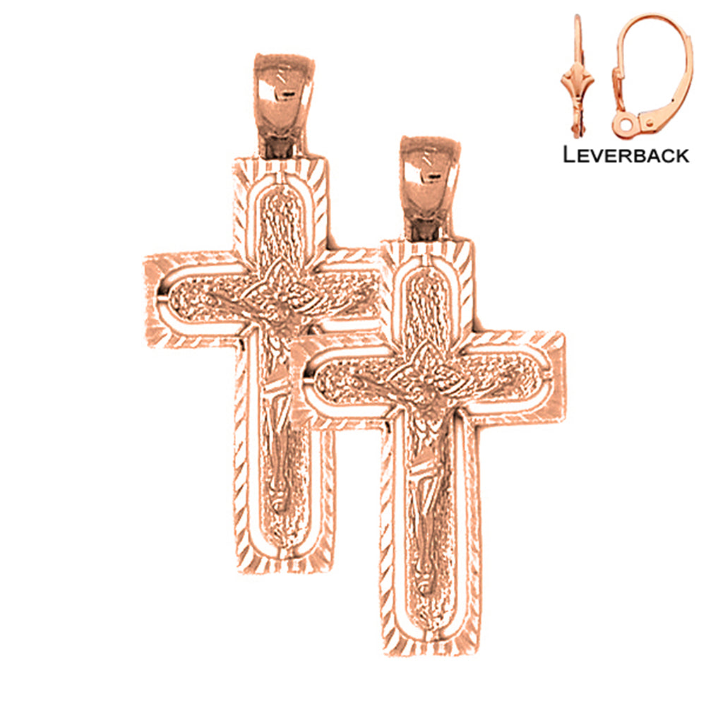 14K or 18K Gold 37mm Routed Crucifix Earrings