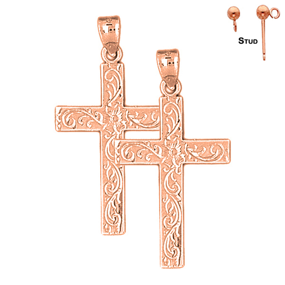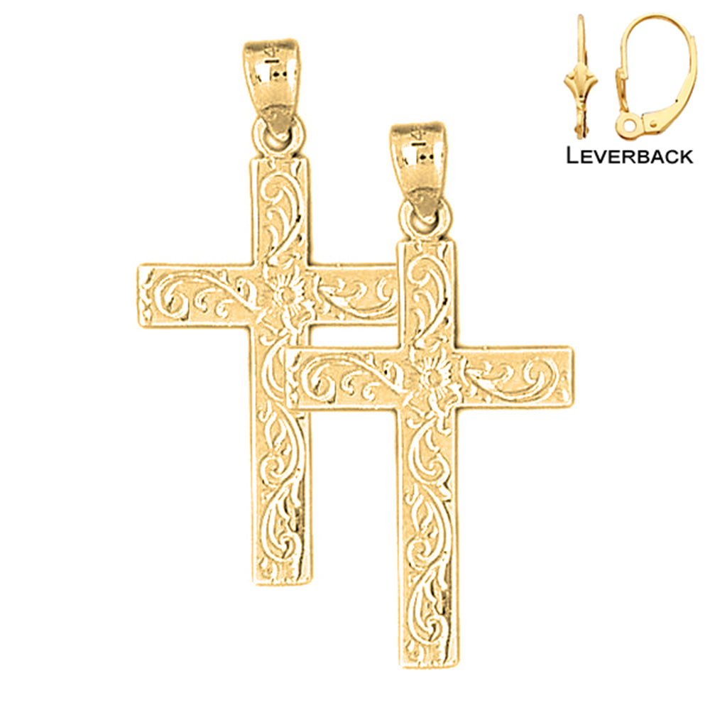 14K or 18K Gold 38mm Vine Cross Earrings
