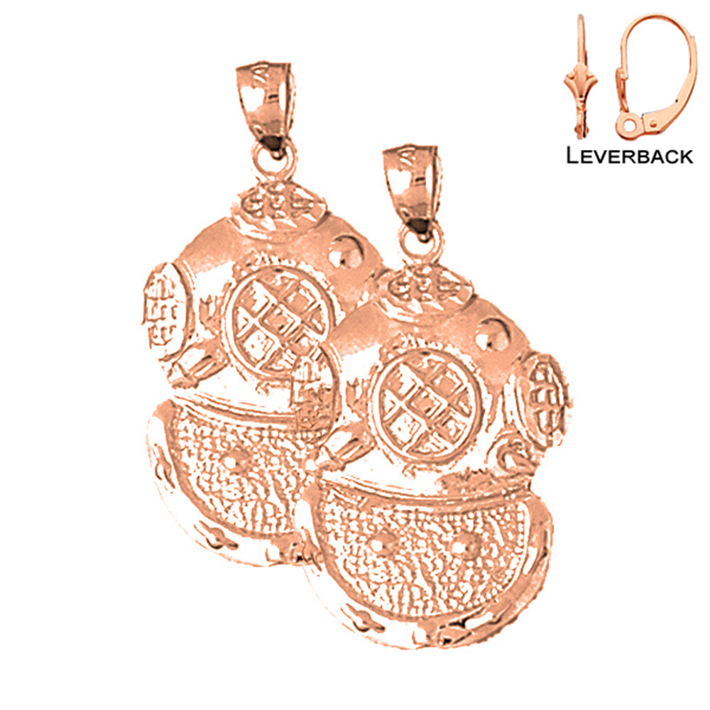 14K or 18K Gold 39mm Diving Helmet Earrings