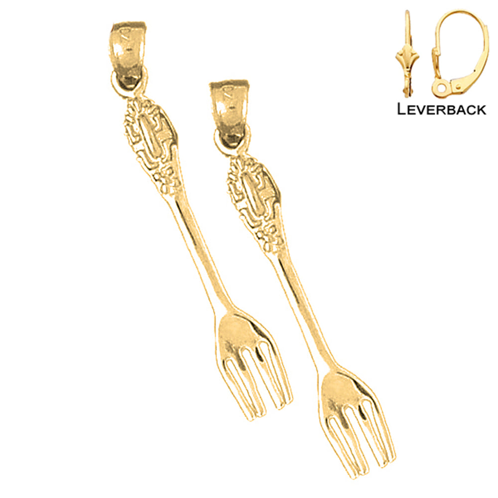 This is a gorgeous 14k yellow gold 39mm fork earrings. This 14k yellow gold earrings measures 39 mm in length by 17 mm width. JewelsObsession creates all gold jewelry in our state of the art manufacturing facility.
