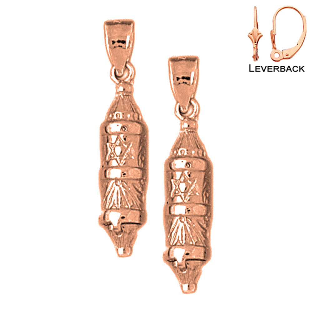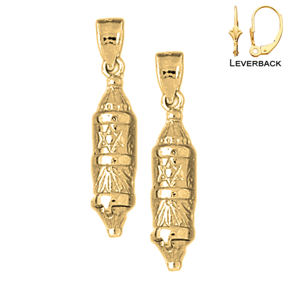 14K or 18K Gold 39mm Jewish Torah Scroll with Star Earrings