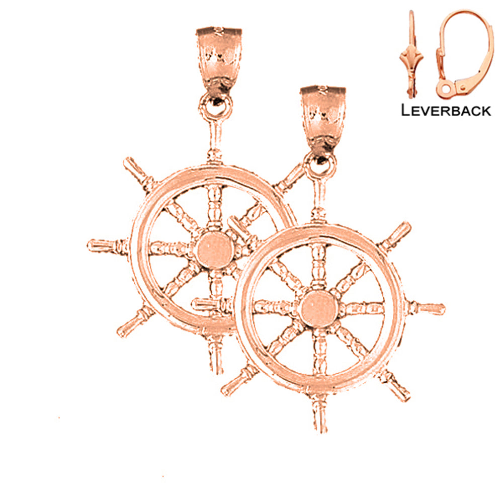 14K or 18K Gold 39mm Ships Wheel Earrings