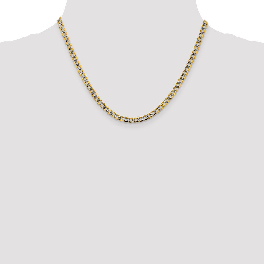 14K Yellow Gold 4.3mm Semi-solid with Rhodium Pave Curb Chain