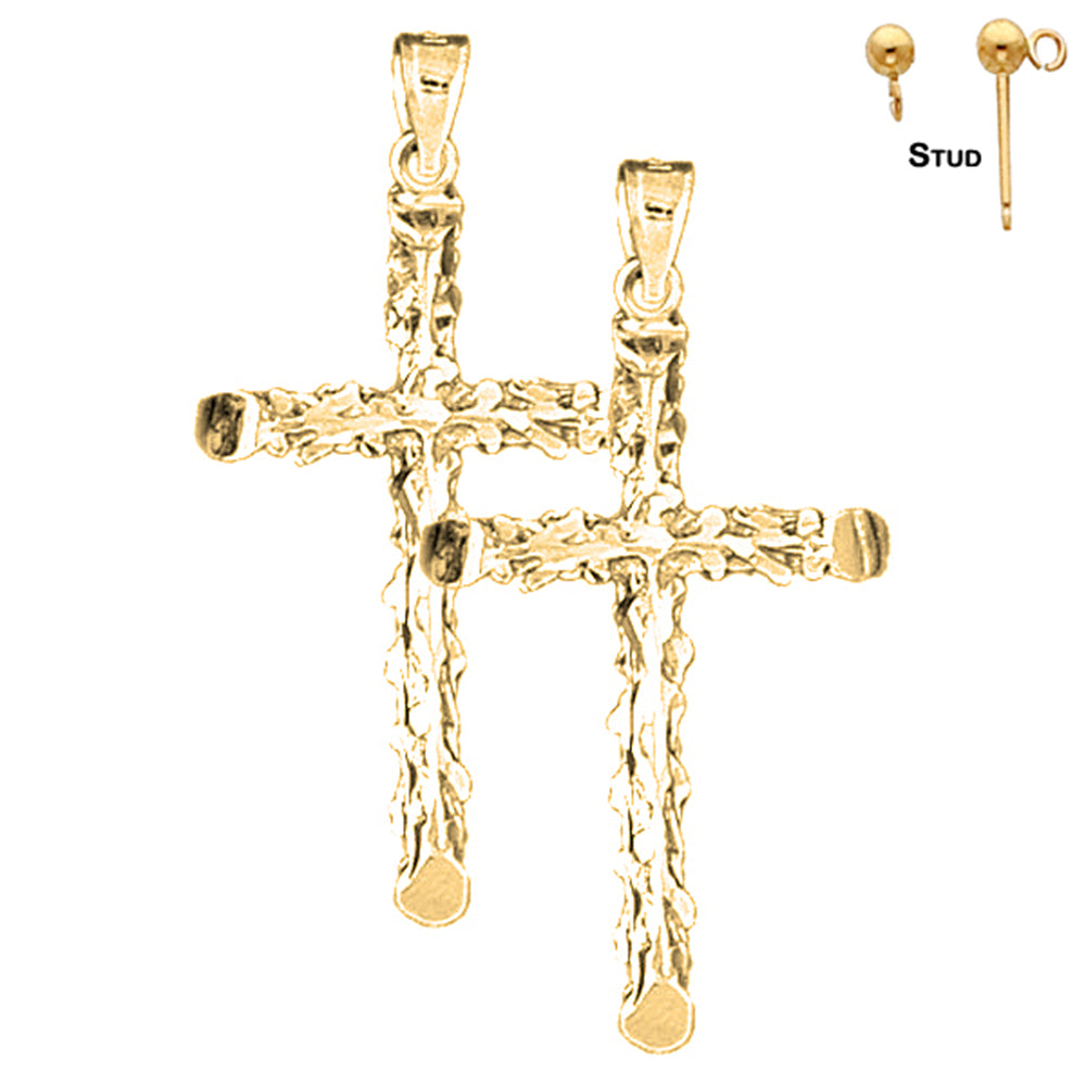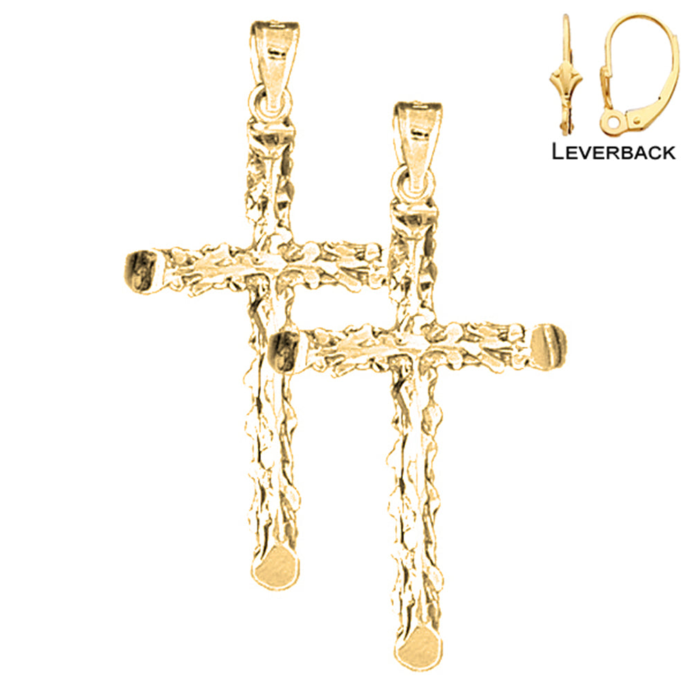 This is a stunning 14k yellow gold 40mm floral cross earrings. This 14k yellow gold earrings measures 40 mm in length by 21 mm width. JewelsObsession creates all gold jewelry in our state of the art manufacturing facility.