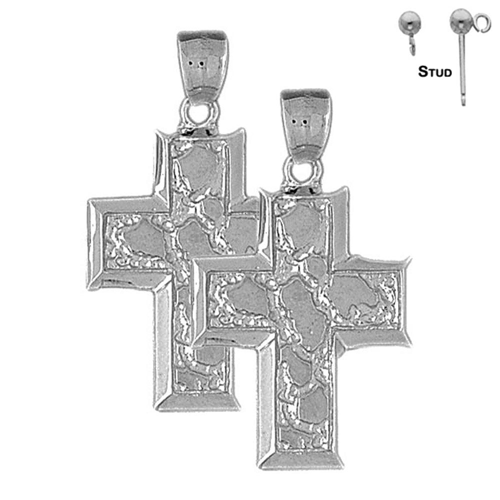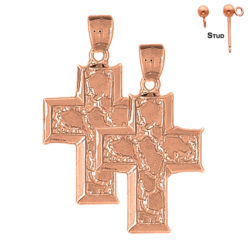 14K or 18K Gold 40mm Nugget Cross Earrings
