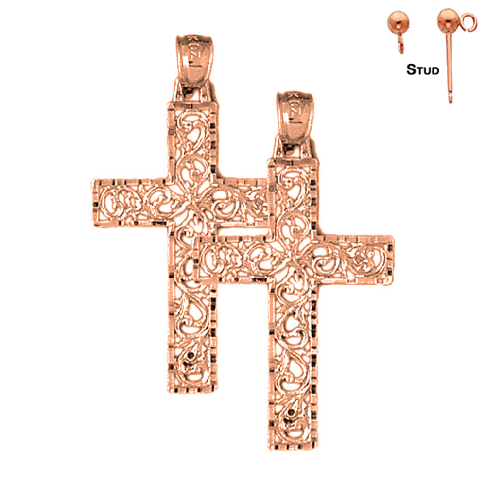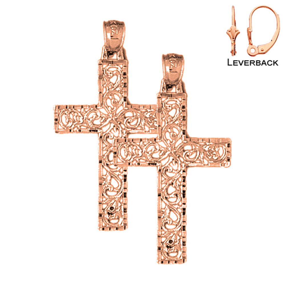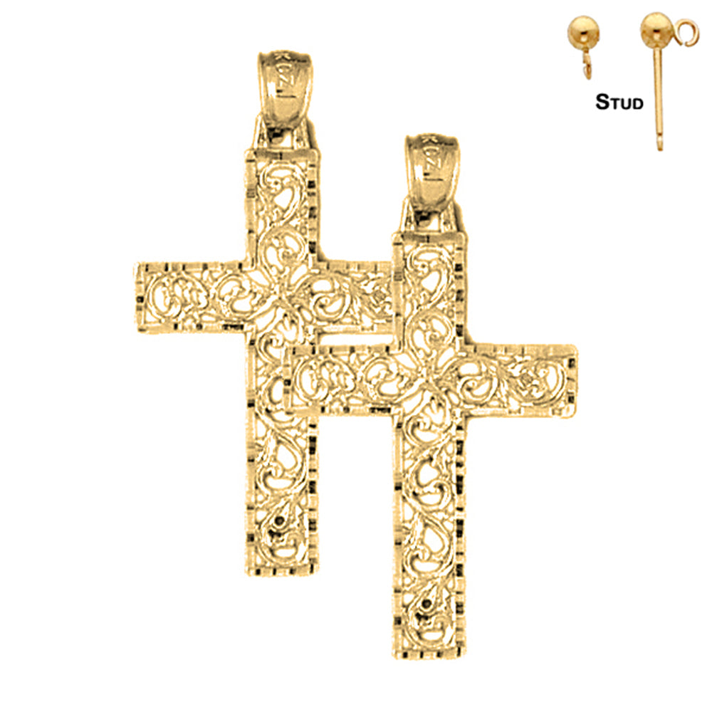 This is an elegant 14k yellow gold 40mm vine cross earrings. This 14k yellow gold earrings measures 40 mm in length by 22 mm width. JewelsObsession creates all gold jewelry in our state of the art manufacturing facility.