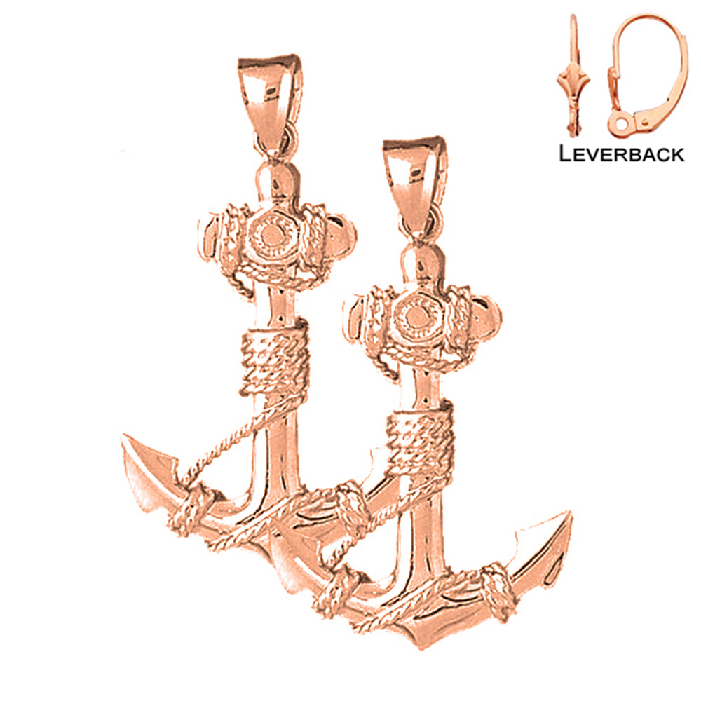 14K or 18K Gold 41mm Anchor With Rope 3D Earrings