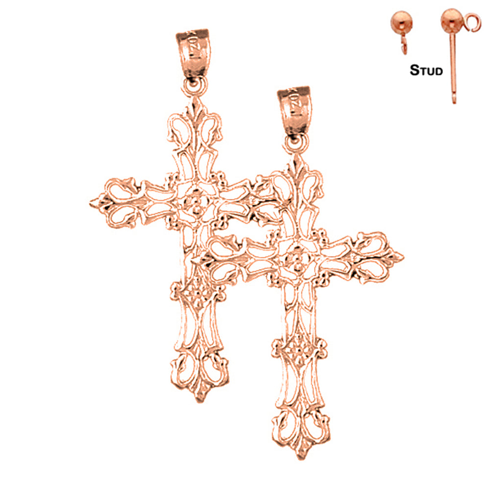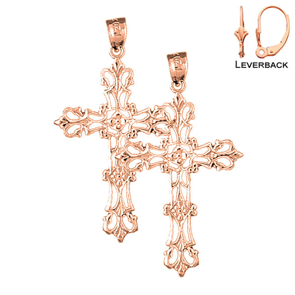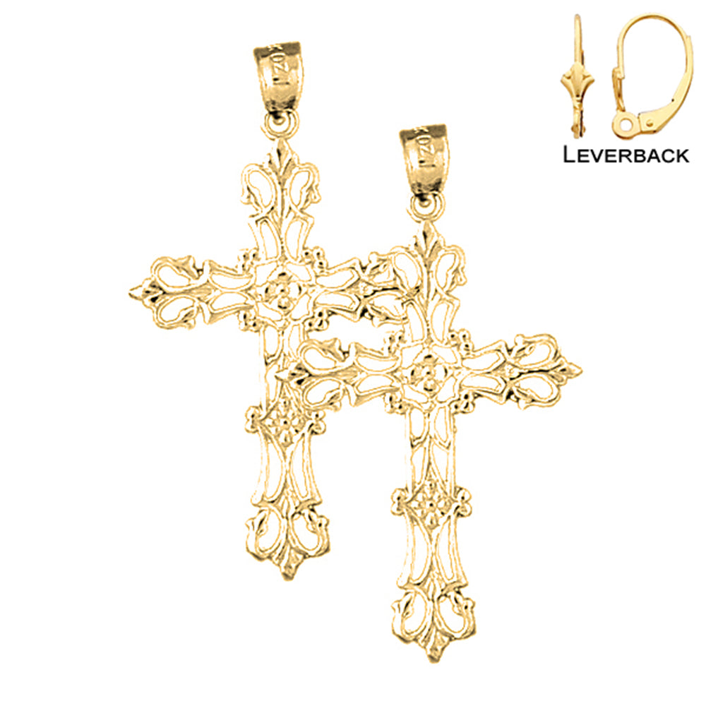 This is a stunning 14k yellow gold 41mm floral cross earrings. This 14k yellow gold earrings measures 41 mm in length by 24 mm width. JewelsObsession creates all gold jewelry in our state of the art manufacturing facility.