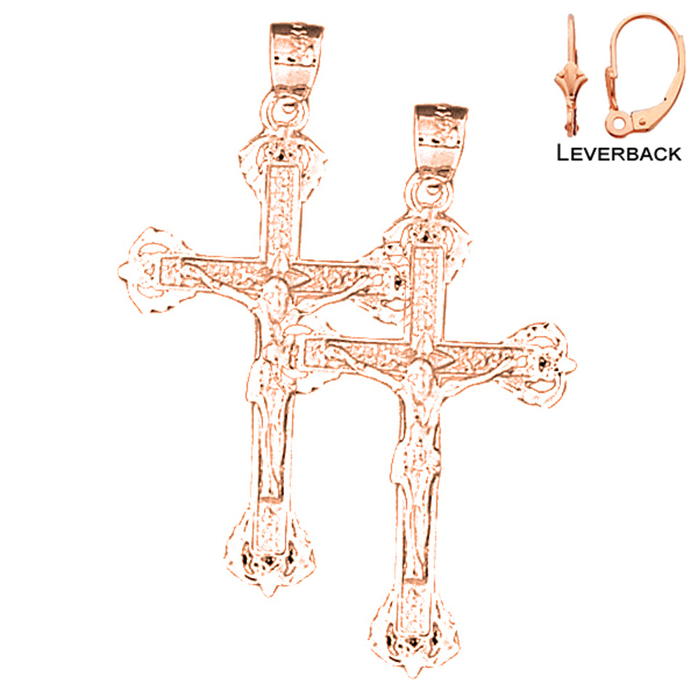 14K or 18K Gold 41mm Latin Crucifix Earrings