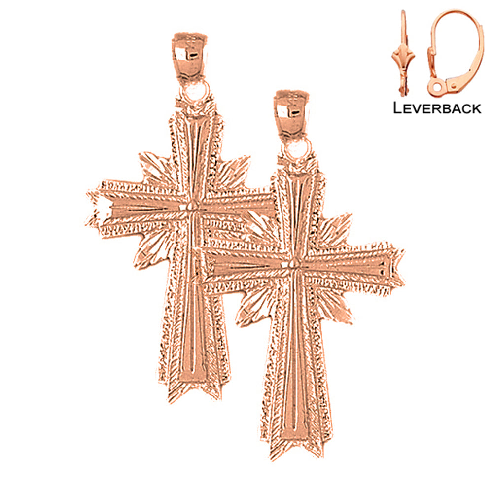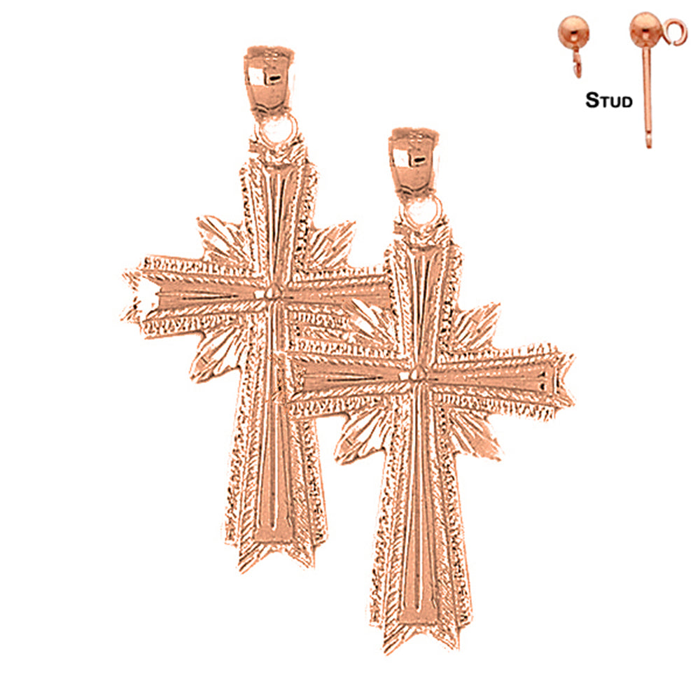 This is an elegant 14k yellow gold 42mm glory cross earrings. This 14k yellow gold earrings measures 42 mm in length by 25 mm width. JewelsObsession creates all gold jewelry in our state of the art manufacturing facility.