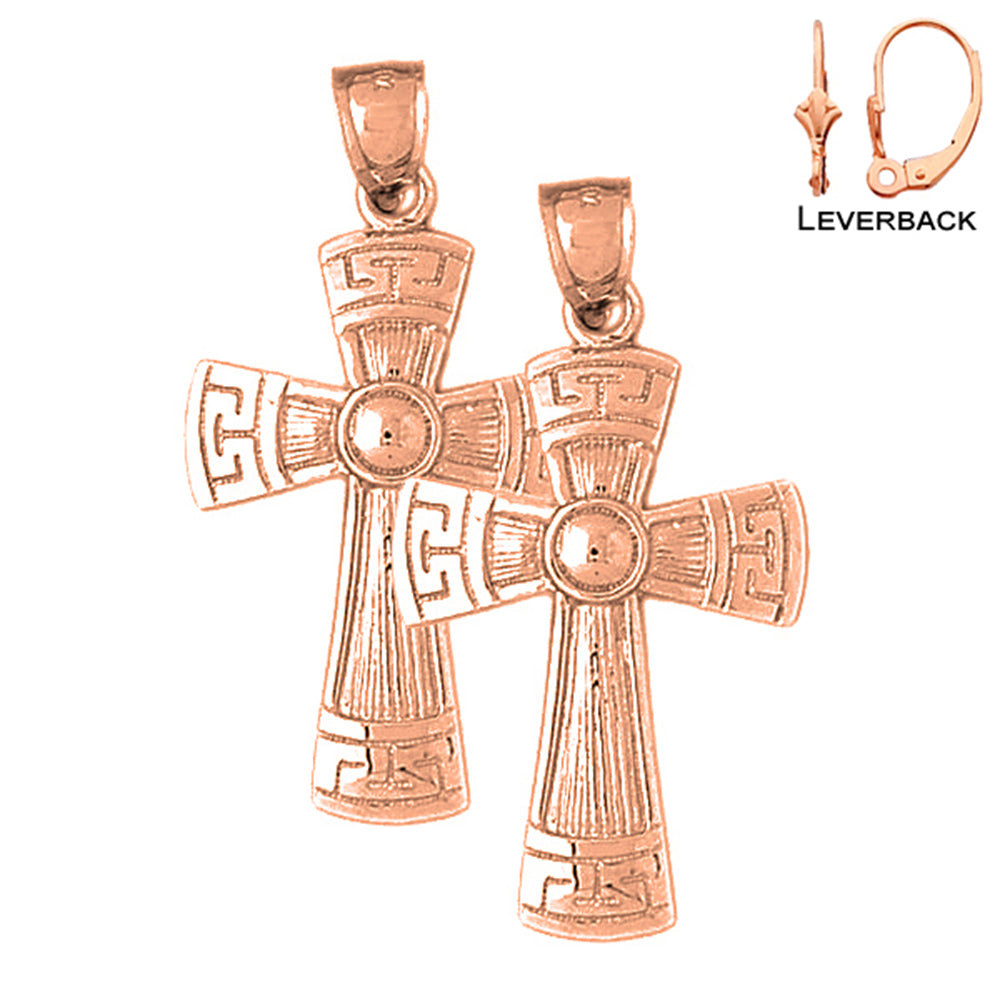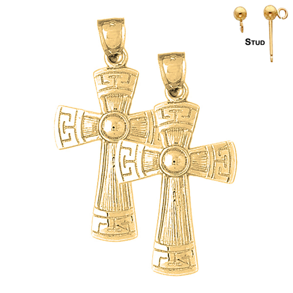 This is a gorgeous 14k yellow gold 42mm greek cross earrings. This 14k yellow gold earrings measures 42 mm in length by 23 mm width. JewelsObsession creates all gold jewelry in our state of the art manufacturing facility.