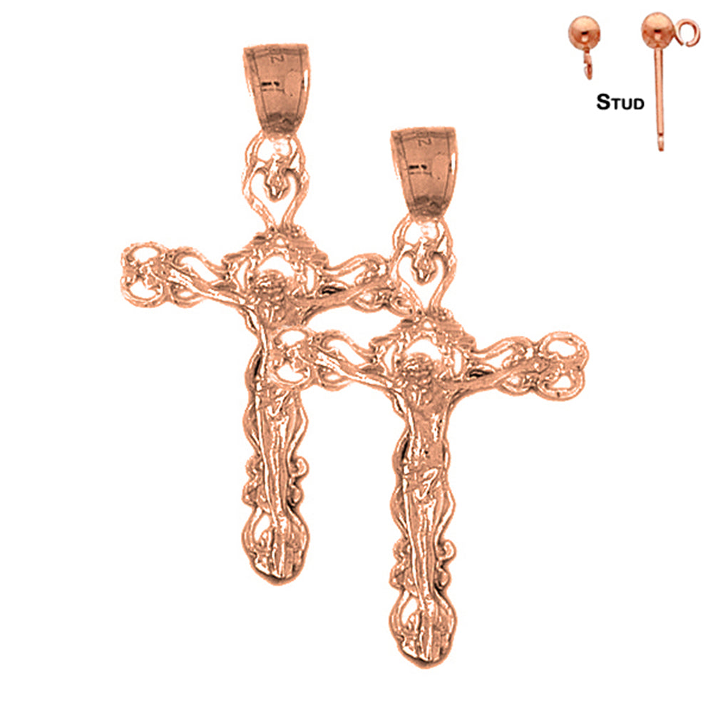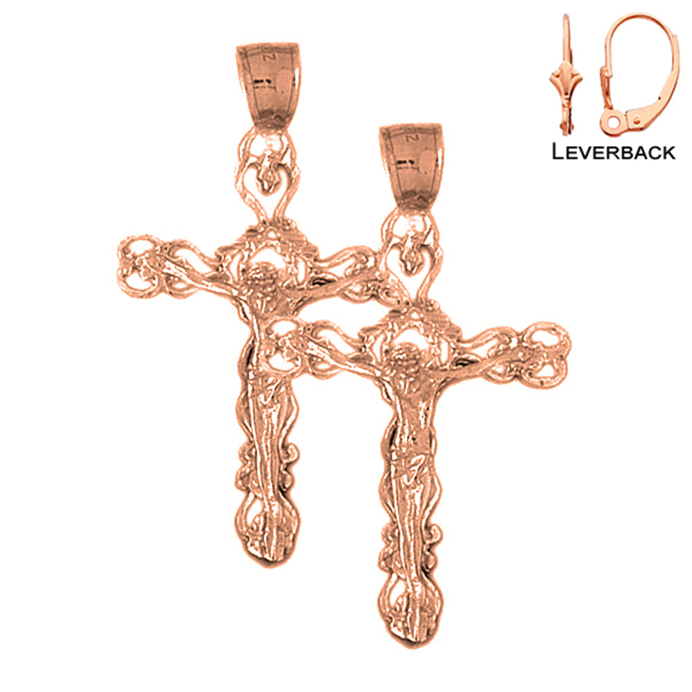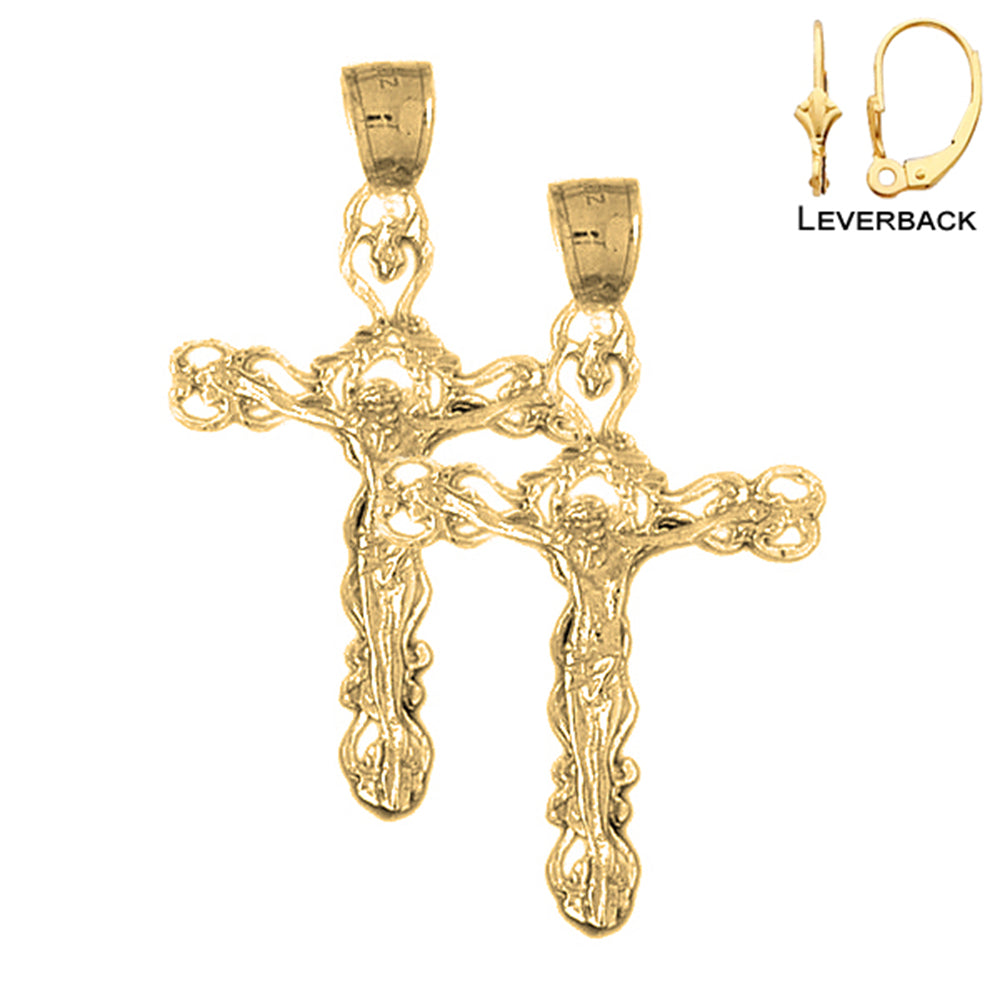 14K or 18K Gold 43mm Budded Crucifix Earrings