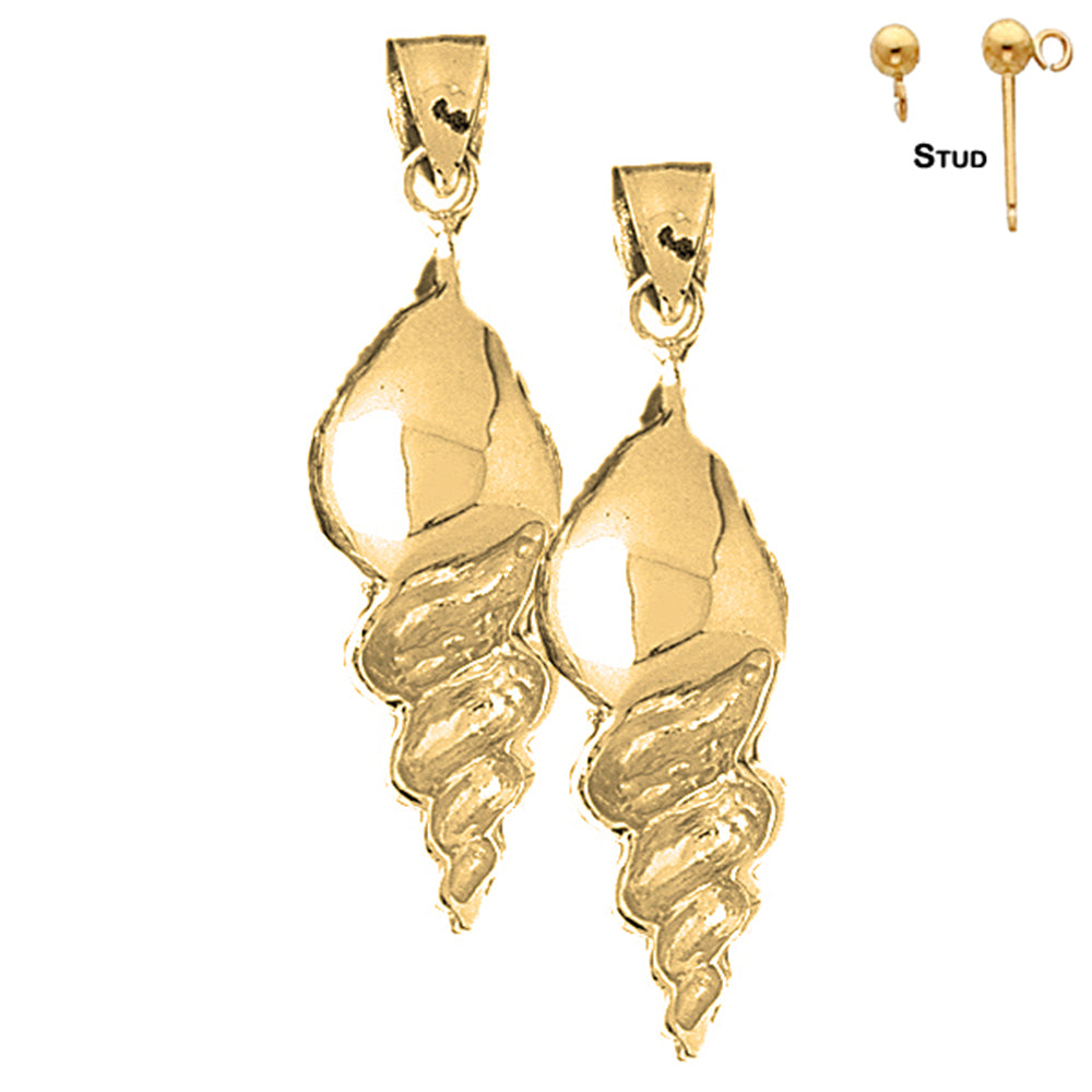 This is an elegant 14k yellow gold 43mm conch shell earrings. This 14k yellow gold earrings measures 43 mm in length by 13 mm width. JewelsObsession creates all gold jewelry in our state of the art manufacturing facility.