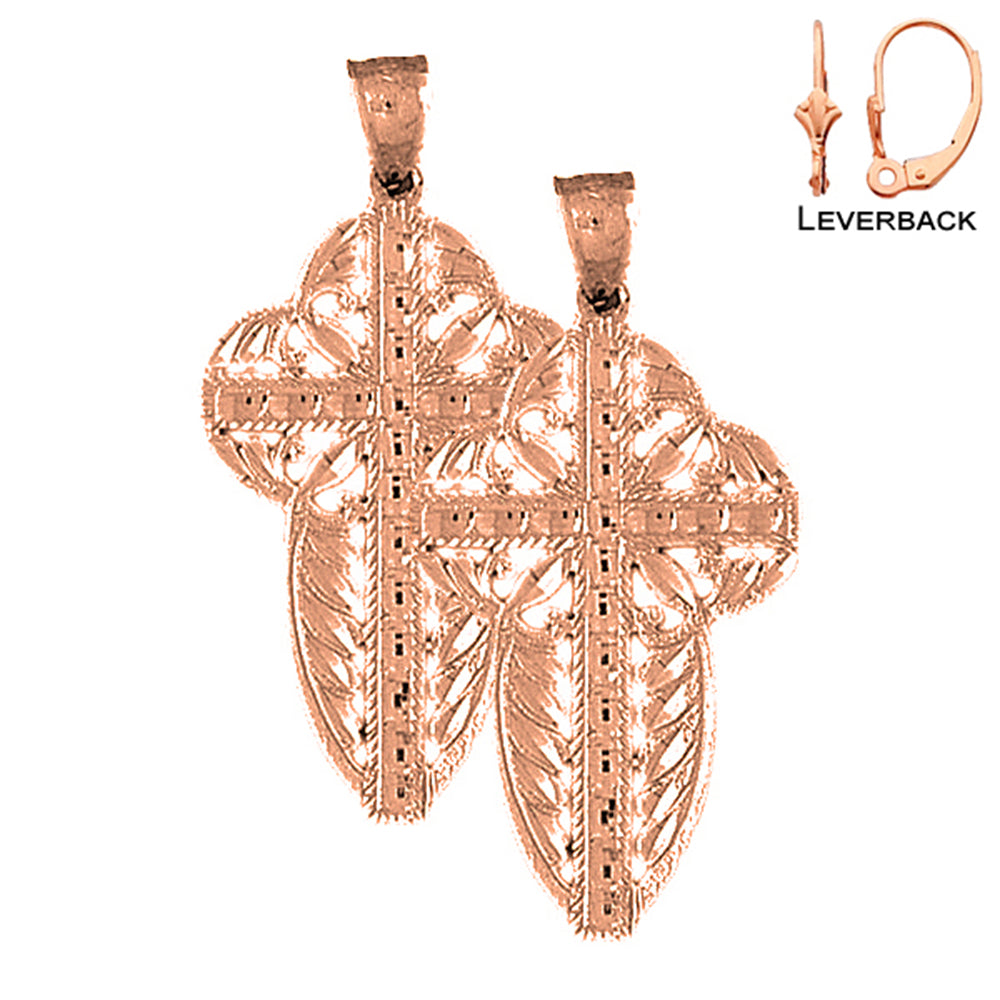 This is an elegant 14k yellow gold 43mm floral cross earrings. This 14k yellow gold earrings measures 43 mm in length by 22 mm width. JewelsObsession creates all gold jewelry in our state of the art manufacturing facility.