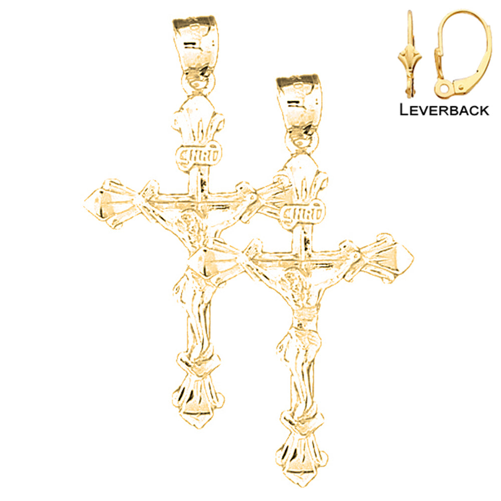 14K or 18K Gold 43mm INRI Crucifix Earrings
