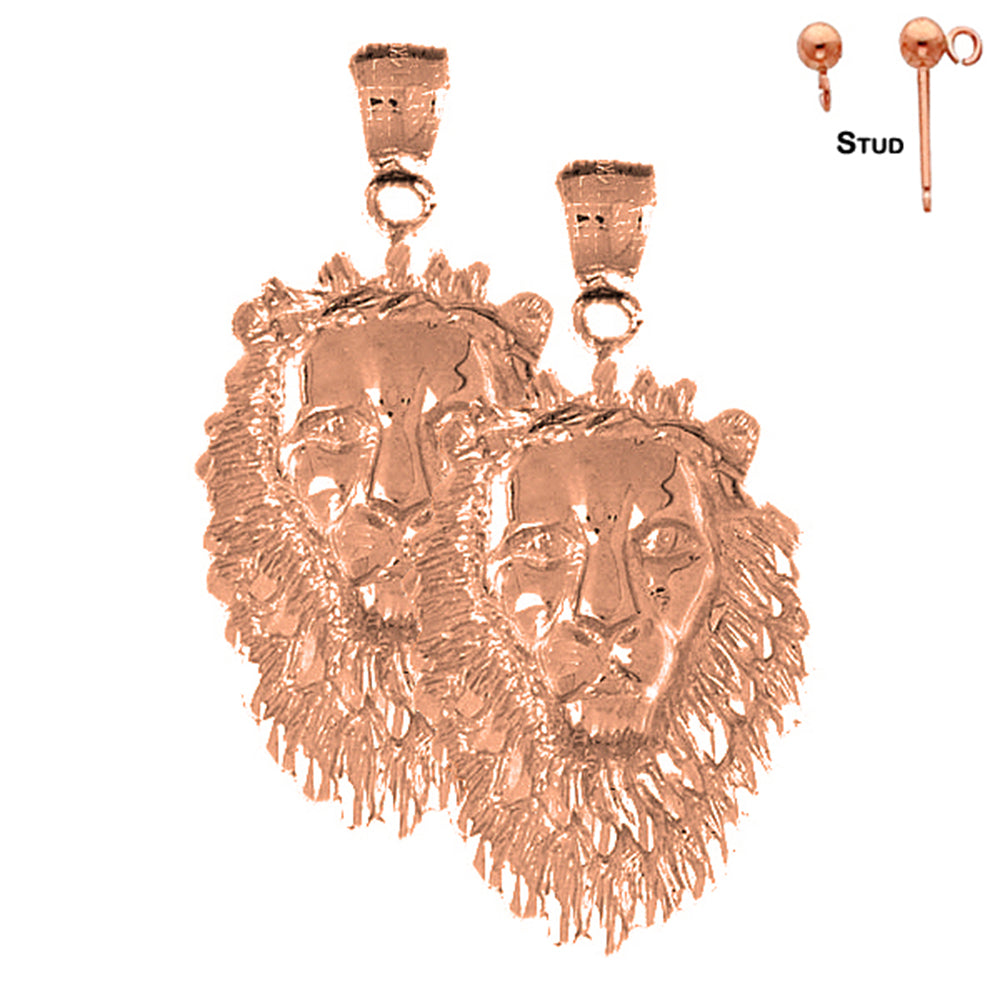 This is a beautiful 14k yellow gold 43mm lion head earrings. This 14k yellow gold earrings measures 43 mm in length by 23 mm width. JewelsObsession creates all gold jewelry in our state of the art manufacturing facility.