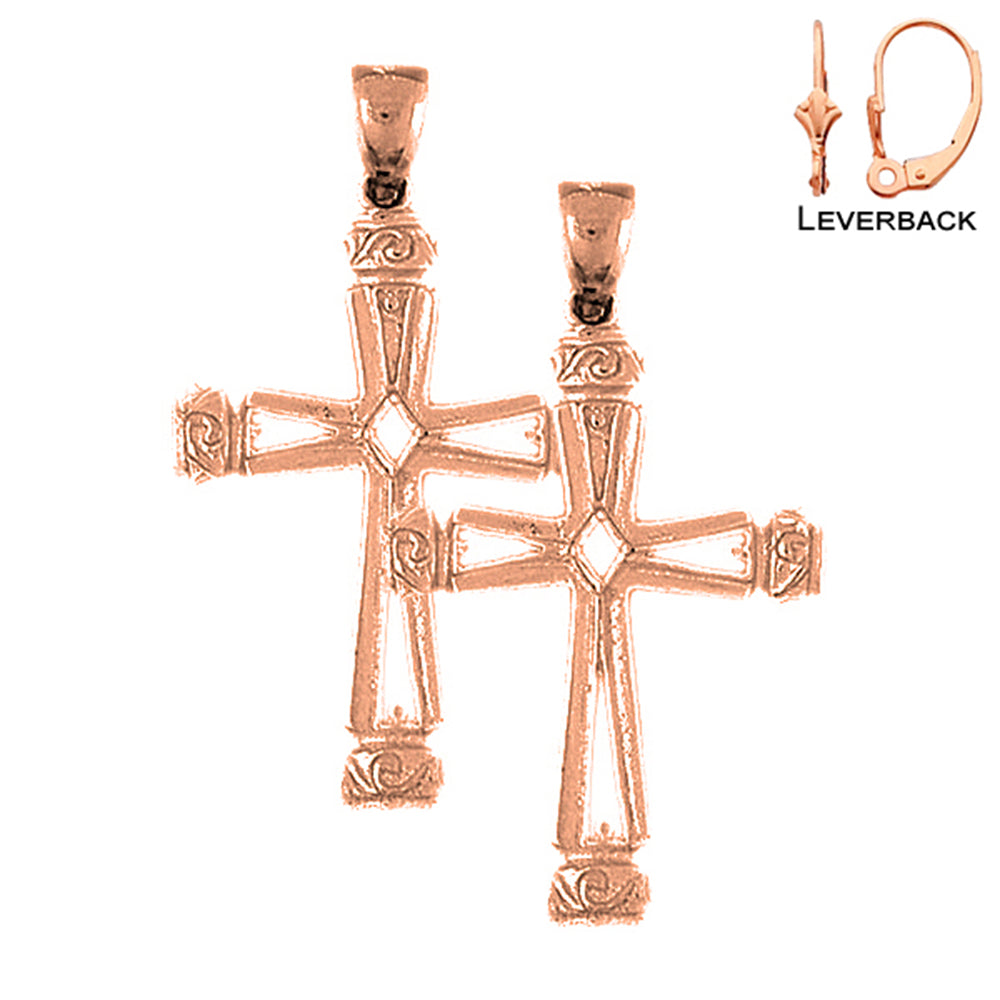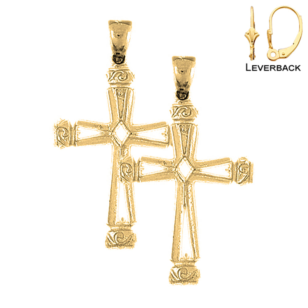 14K or 18K Gold 43mm Vine Cross Earrings