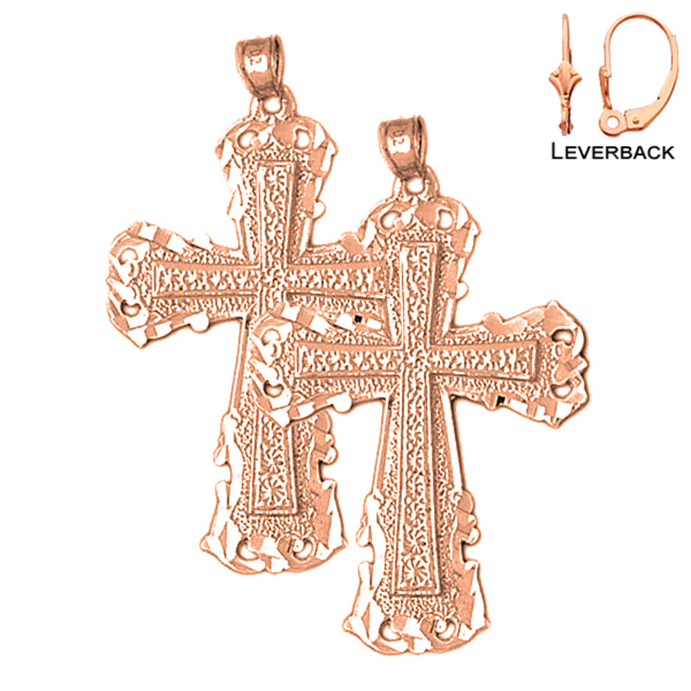 14K or 18K Gold 44mm Budded Cross Earrings