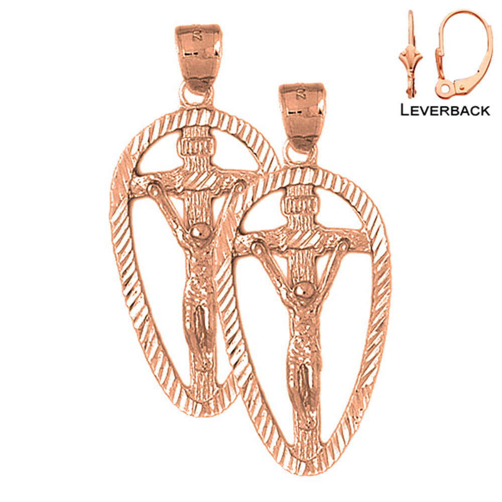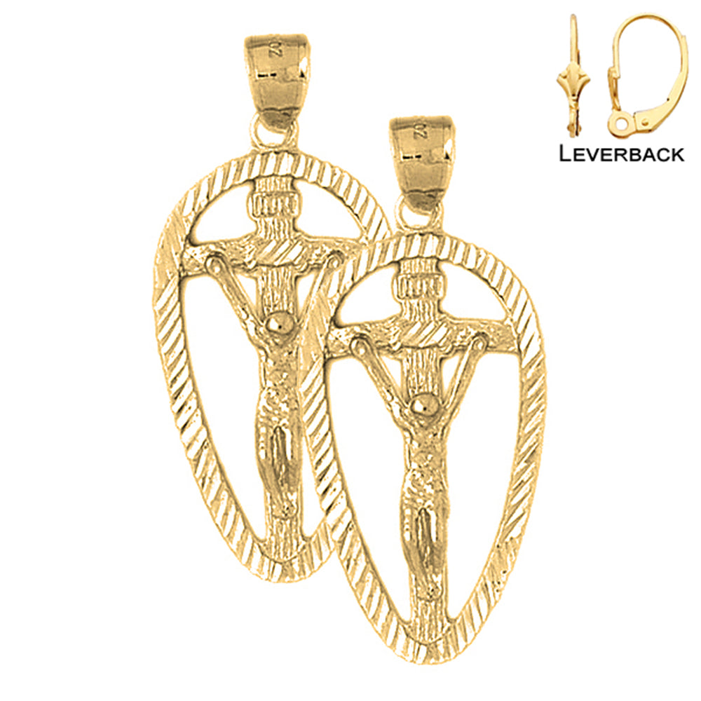 14K or 18K Gold 44mm INRI Crucifix Earrings