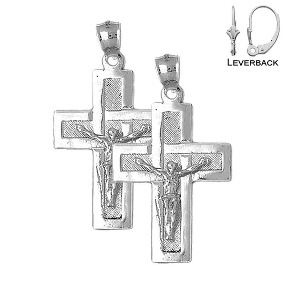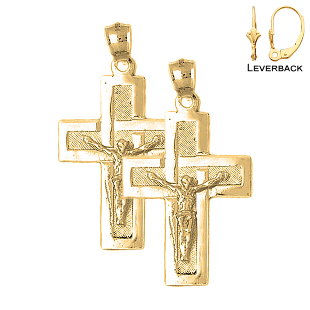 14K or 18K Gold 44mm Latin Crucifix Earrings