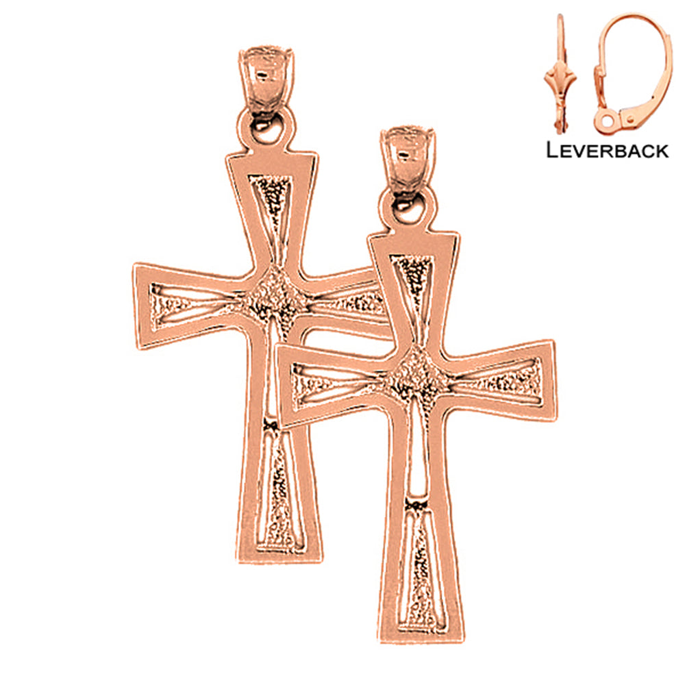 14K or 18K Gold 44mm Nugget Cross Earrings