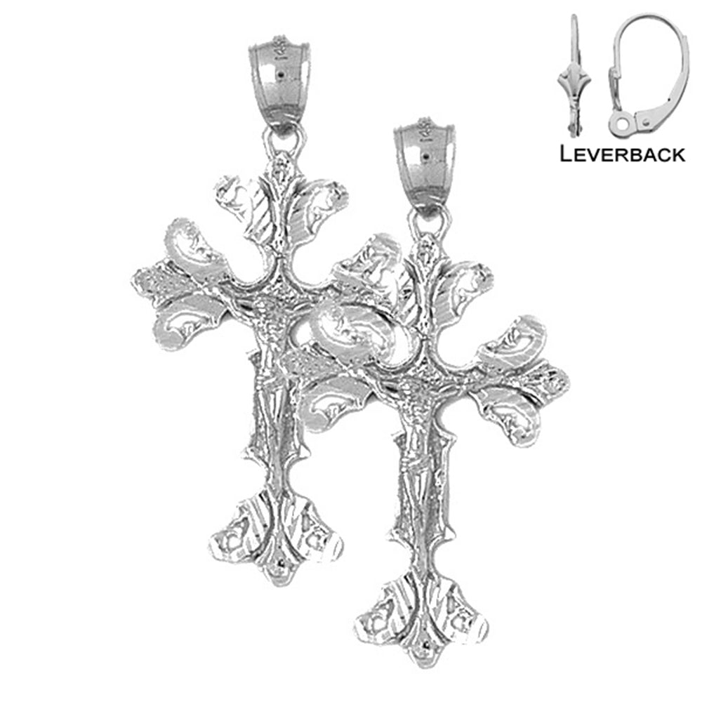 14K or 18K Gold 45mm Budded Crucifix Earrings