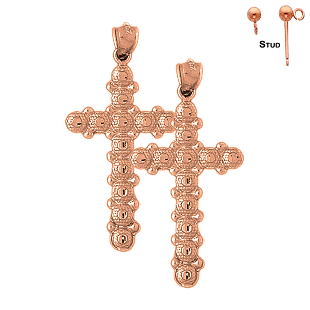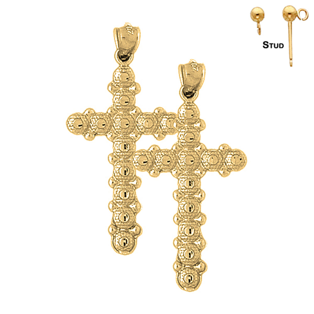 This is an elegant 14k yellow gold 45mm cross earrings. This 14k yellow gold earrings measures 45 mm in length by 22 mm width. JewelsObsession creates all gold jewelry in our state of the art manufacturing facility.