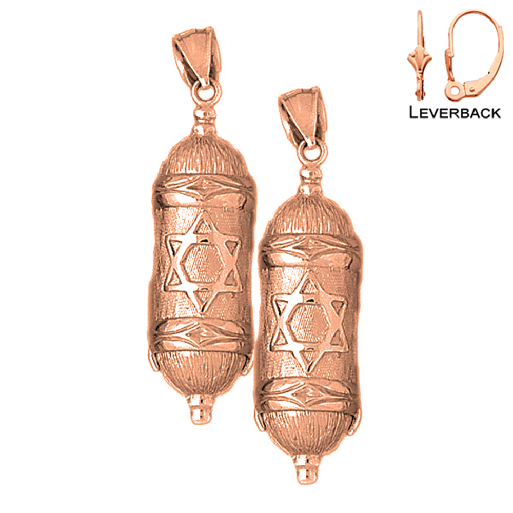 14K or 18K Gold 45mm Jewish Torah Scroll with Star Earrings