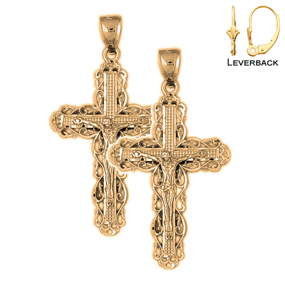 14K or 18K Gold 45mm Vine Crucifix Earrings