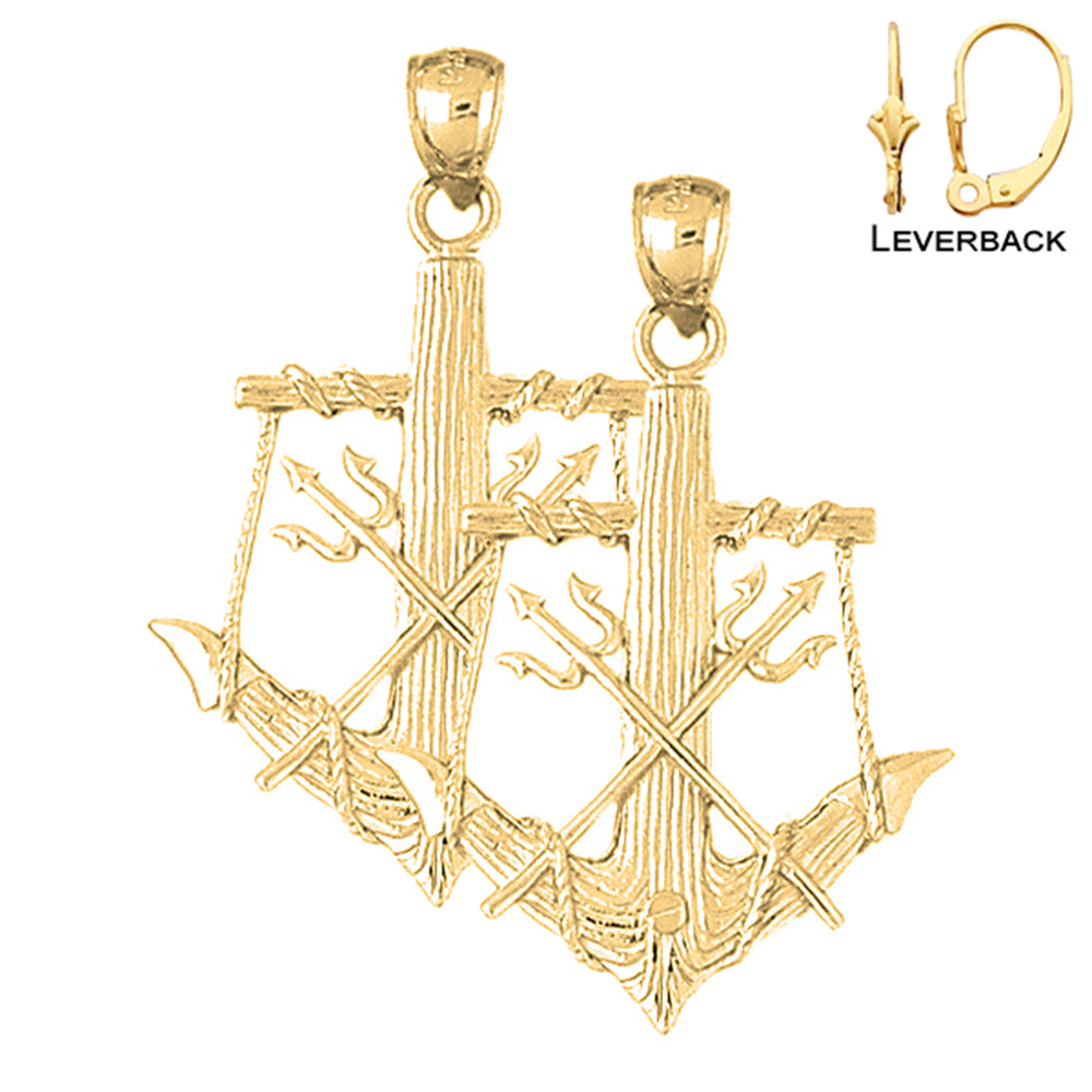 14K or 18K Gold 46mm Anchor With Poseidon's Trident 3D Earrings