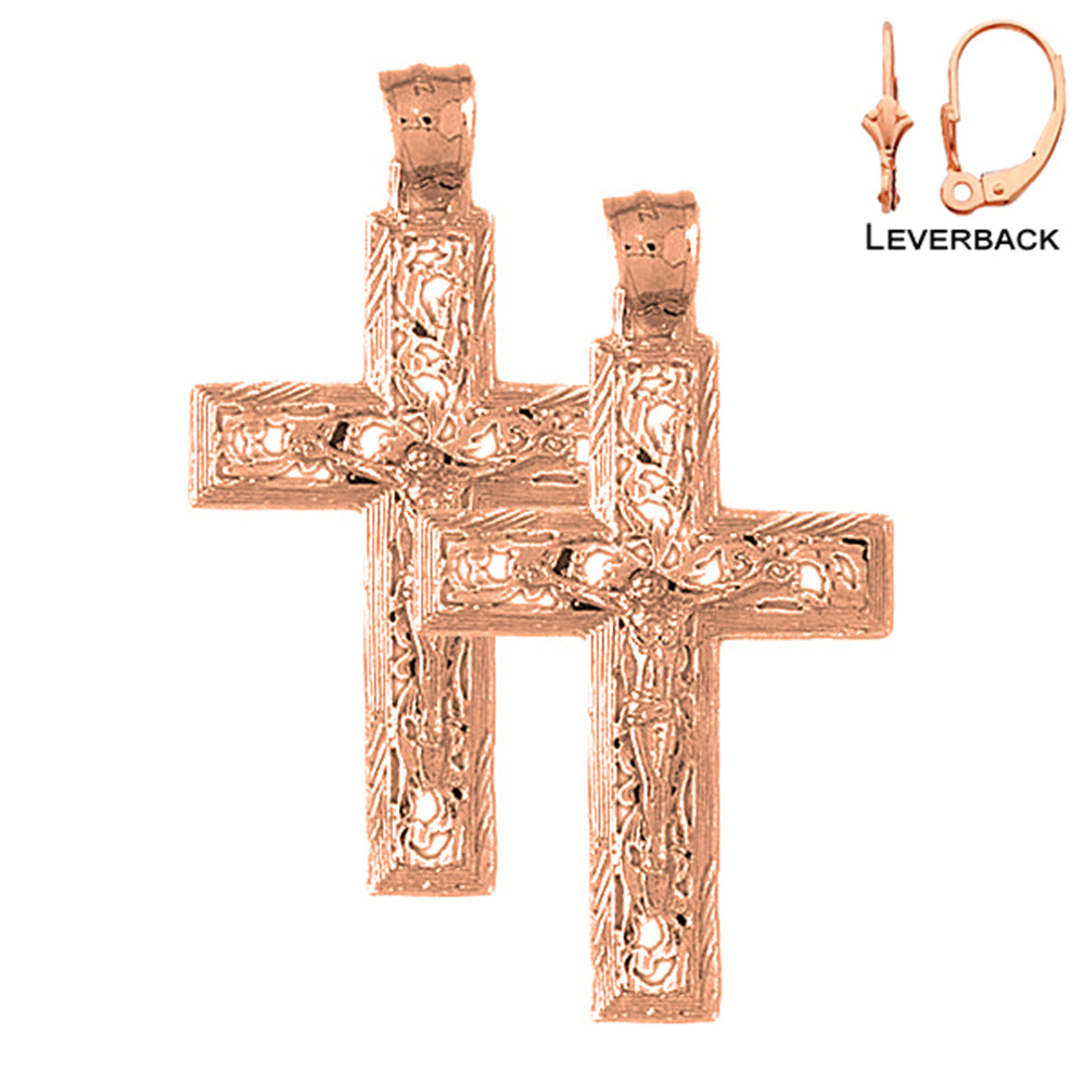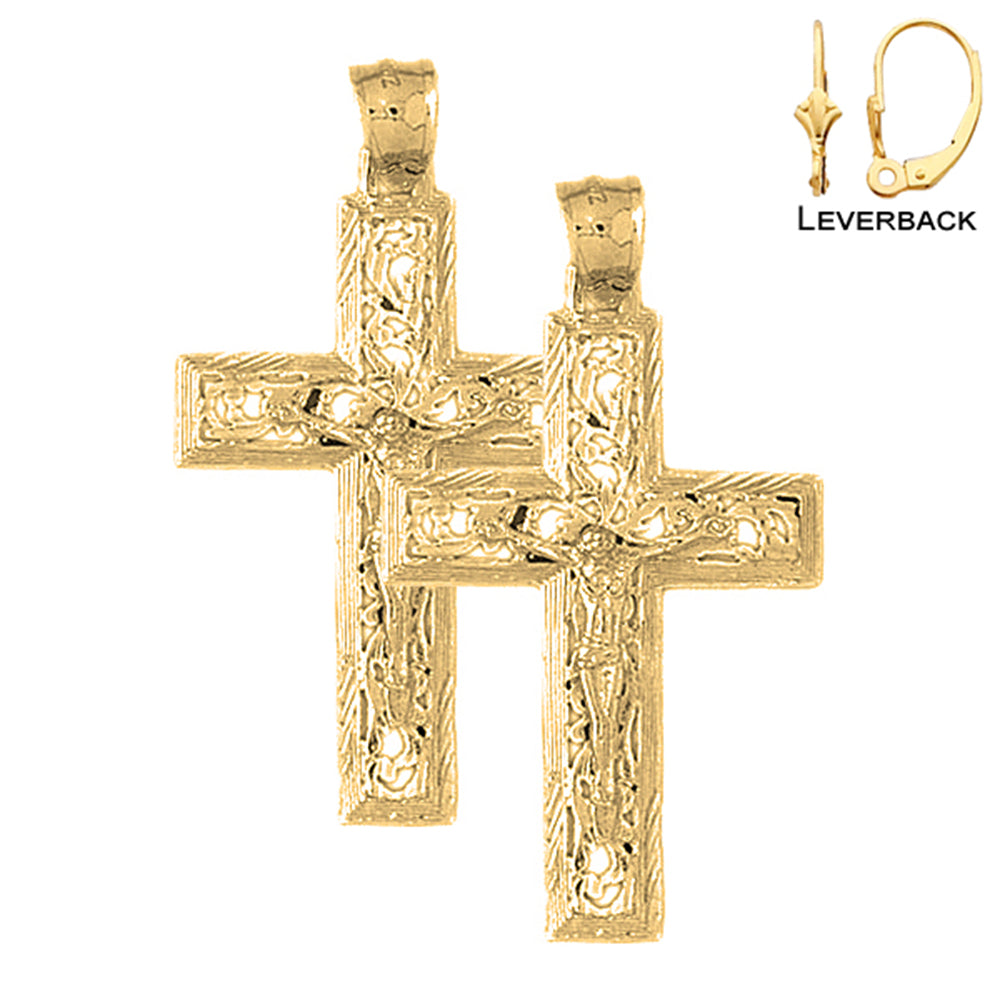 14K or 18K Gold 46mm Vine Crucifix Earrings