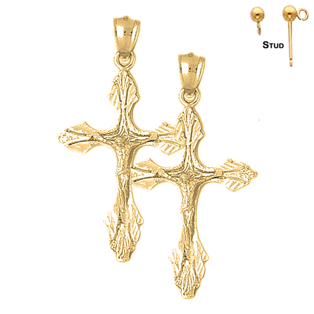 14K or 18K Gold 47mm Budded Crucifix Earrings