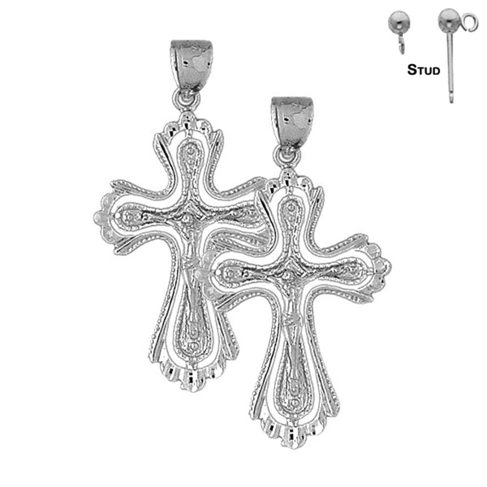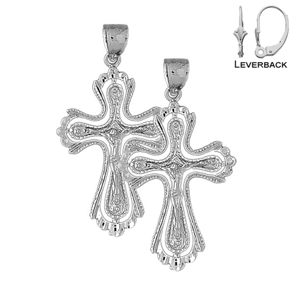 14K or 18K Gold 48mm Budded Crucifix Earrings