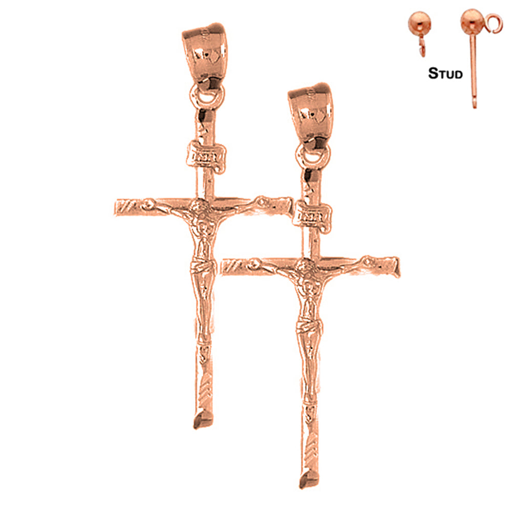 14K or 18K Gold 49mm Hollow INRI Crucifix Earrings