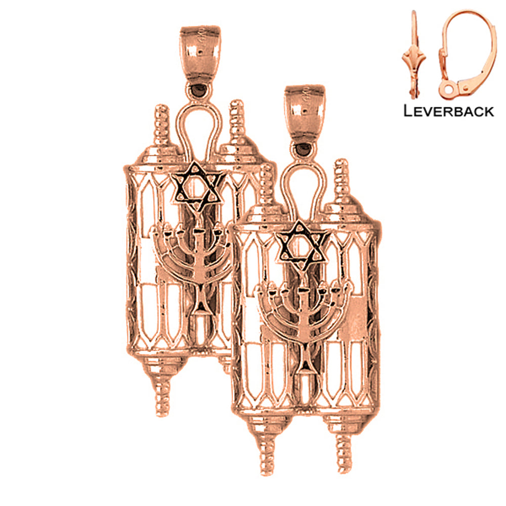 14K or 18K Gold 49mm Torah Scroll with Star & Menorah Earrings