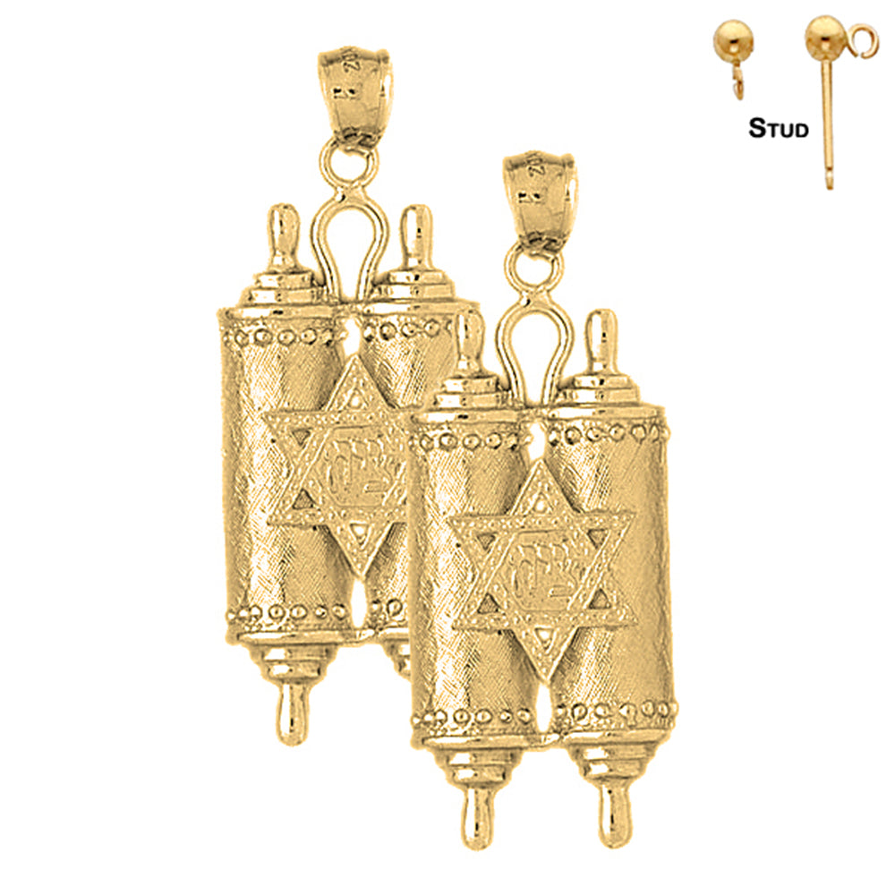 14K or 18K Gold 50mm Jewish Torah Scroll with Star Earrings