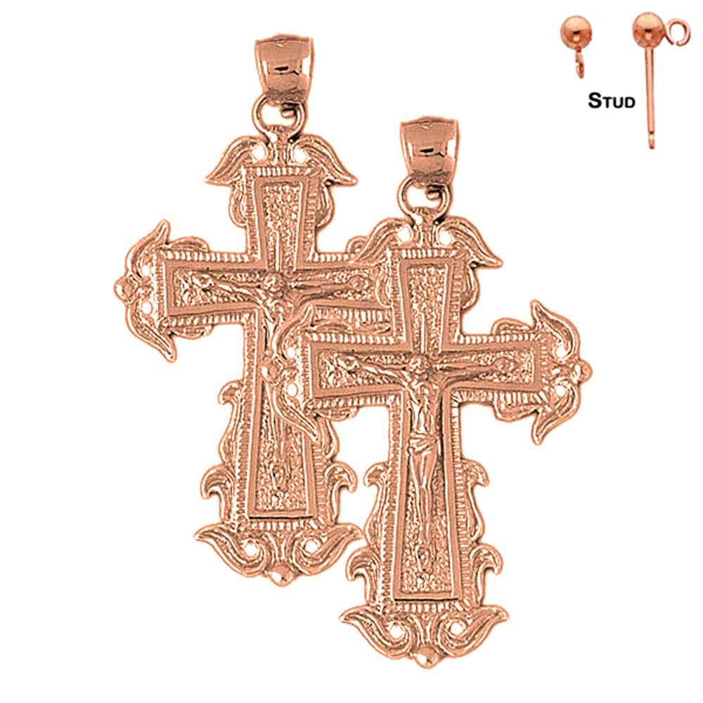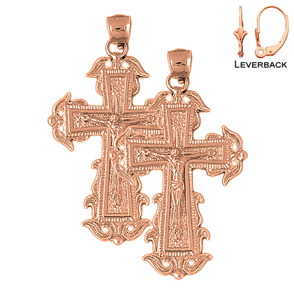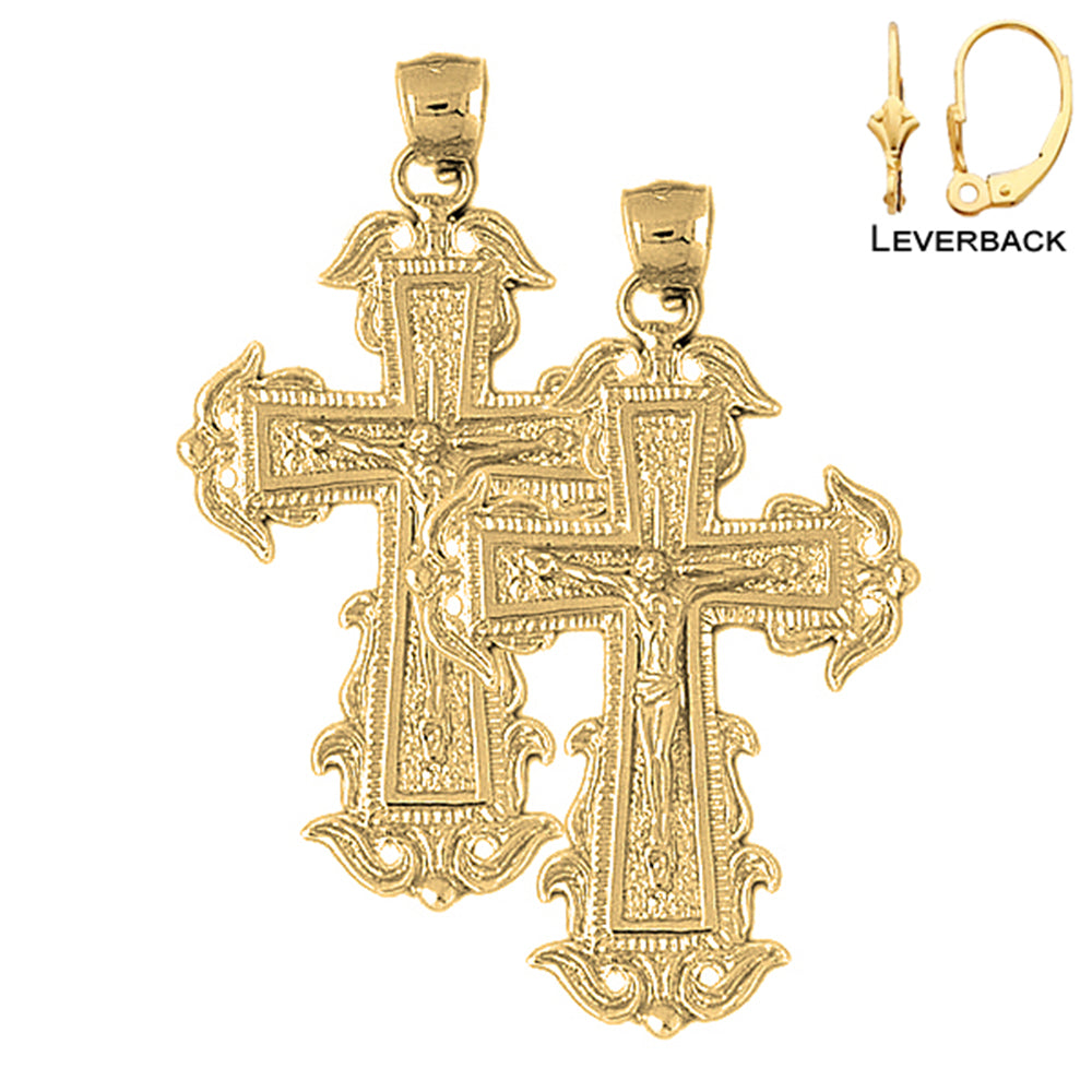 14K or 18K Gold 51mm Budded Crucifix Earrings