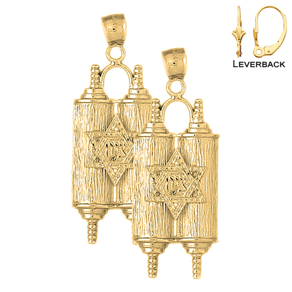 14K or 18K Gold 51mm Jewish Torah Scroll with Star Earrings