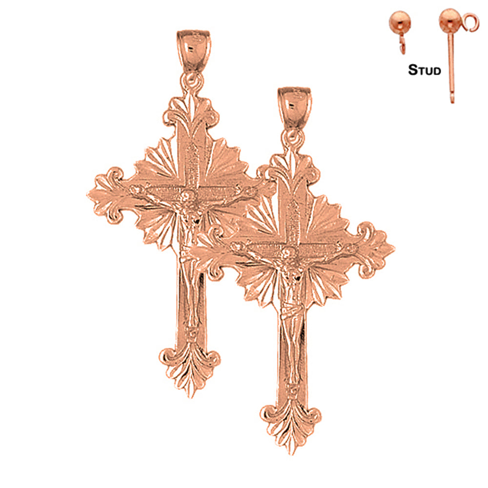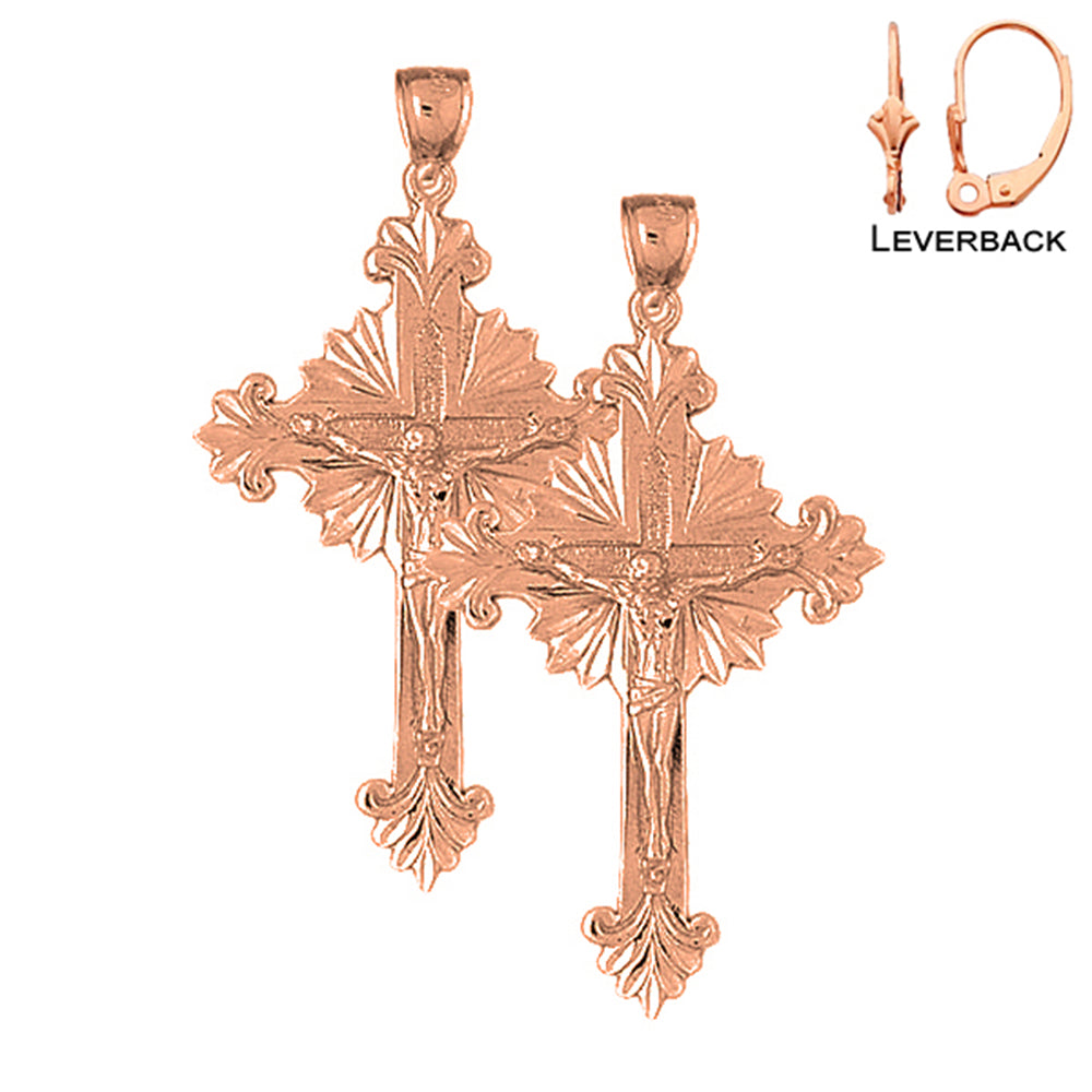14K or 18K Gold 52mm Budded Glory Crucifix Earrings
