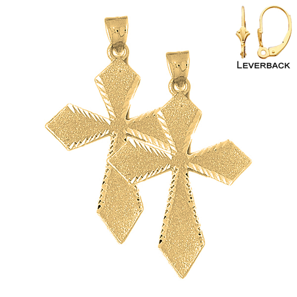 This is an elegant 14k yellow gold 53mm passion cross earrings. This 14k yellow gold earrings measures 53 mm in length by 34 mm width. JewelsObsession creates all gold jewelry in our state of the art manufacturing facility.