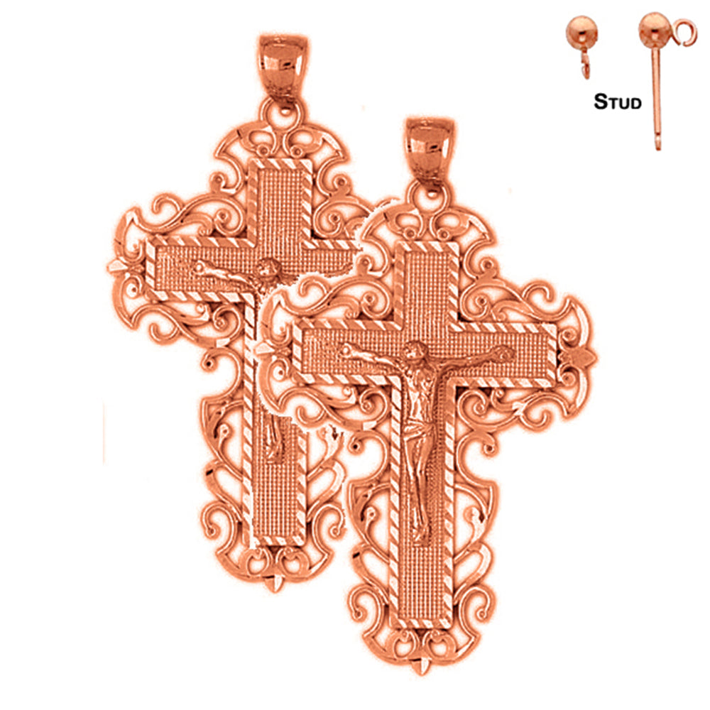 14K or 18K Gold 53mm Vine Crucifix Earrings