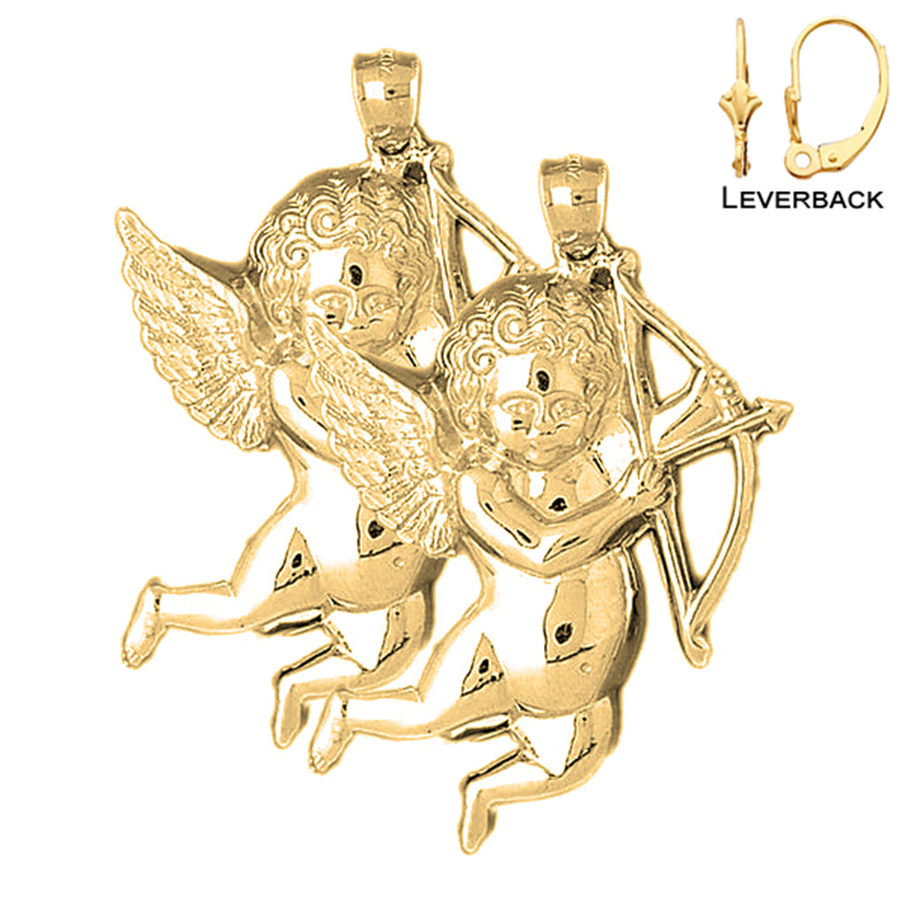 This is an elegant 14k yellow gold 54mm angel earrings. This 14k yellow gold earrings measures 54 mm in length by 38 mm width. JewelsObsession creates all gold jewelry in our state of the art manufacturing facility.