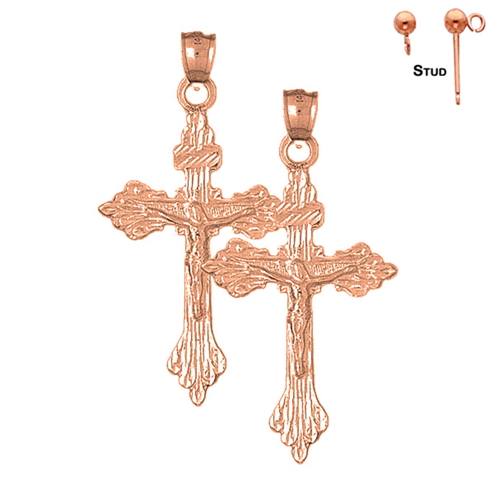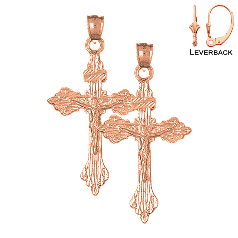 14K or 18K Gold 55mm Budded Crucifix Earrings