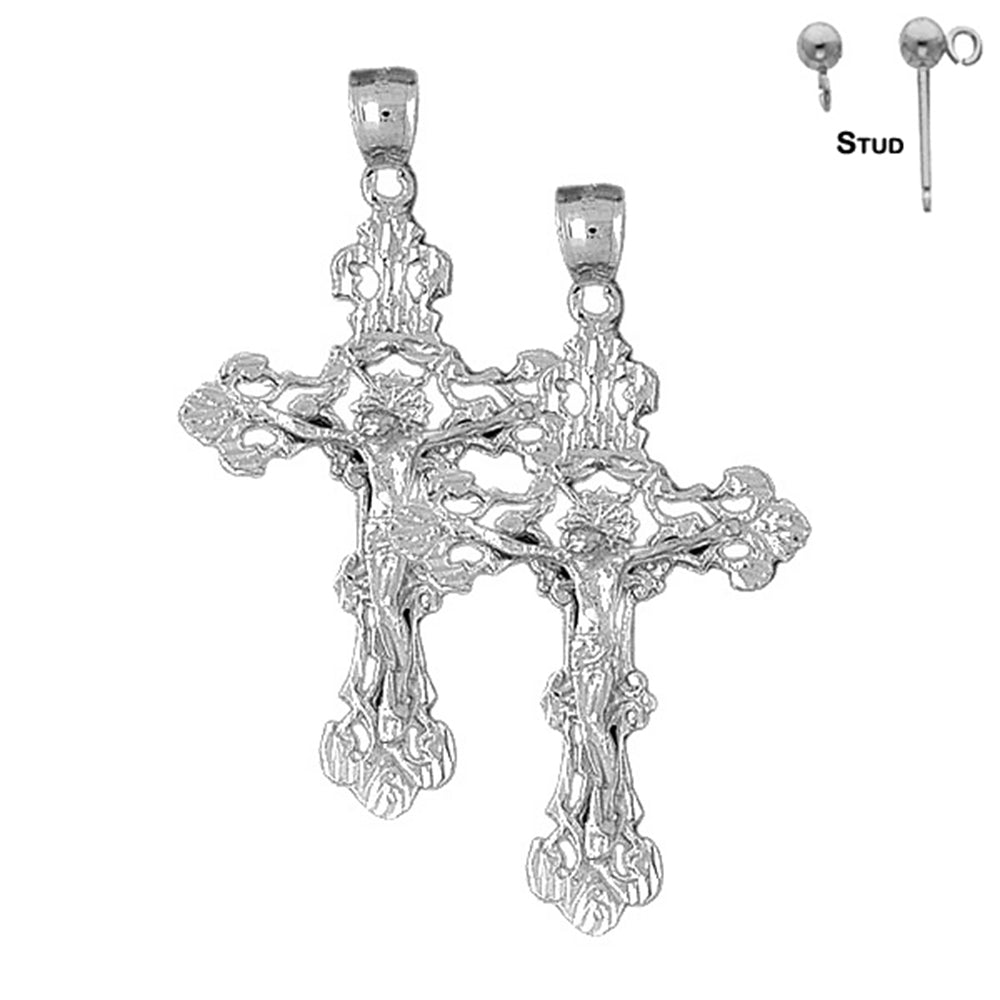 14K or 18K Gold 56mm Budded Crucifix Earrings