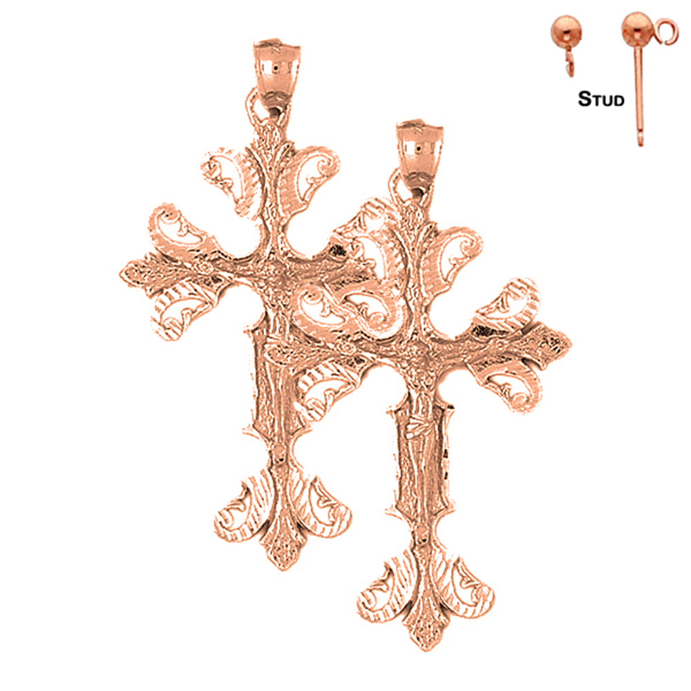 14K or 18K Gold 57mm Budded Crucifix Earrings
